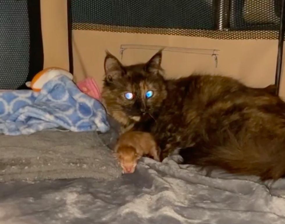 A pregnant cat was rescued from a hoarding situation and brought to a shelter in New Jersey two months ago. She gave birth to a single kitten in the middle of January and was in need of help.