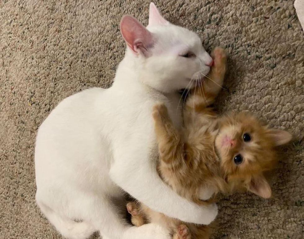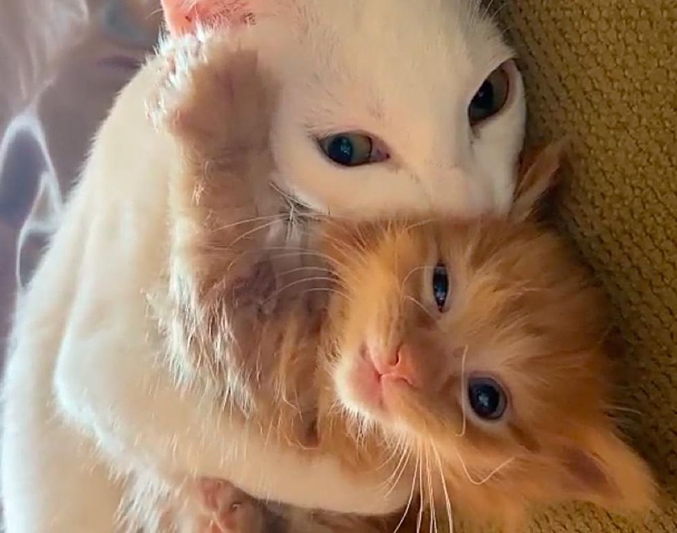 Coconut is usually skeptical of new kittens at first, and it takes him a while to warm up to them. But somehow, Pua gave him a different vibe.