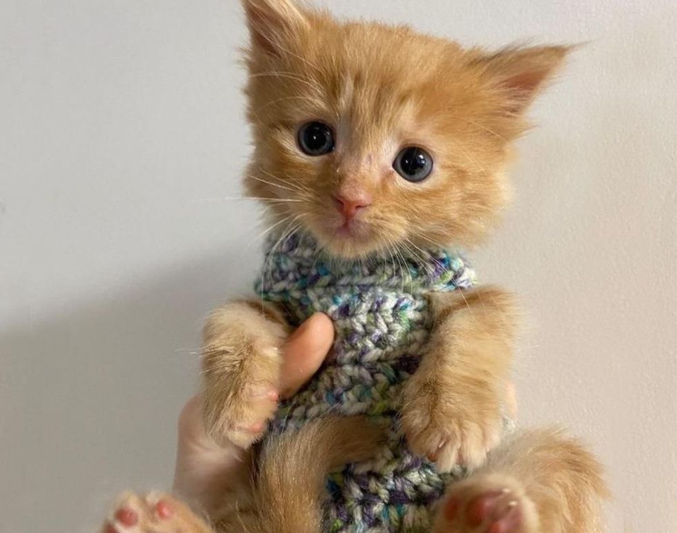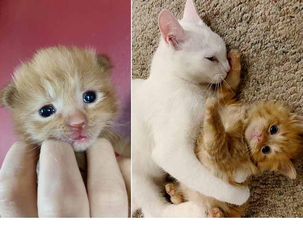 "Coconut was found in an auto-shop parking lot only a few hours old. He battled a severe upper respiratory infection, and we thought we would lose him many times," Riley told Love Meow.
