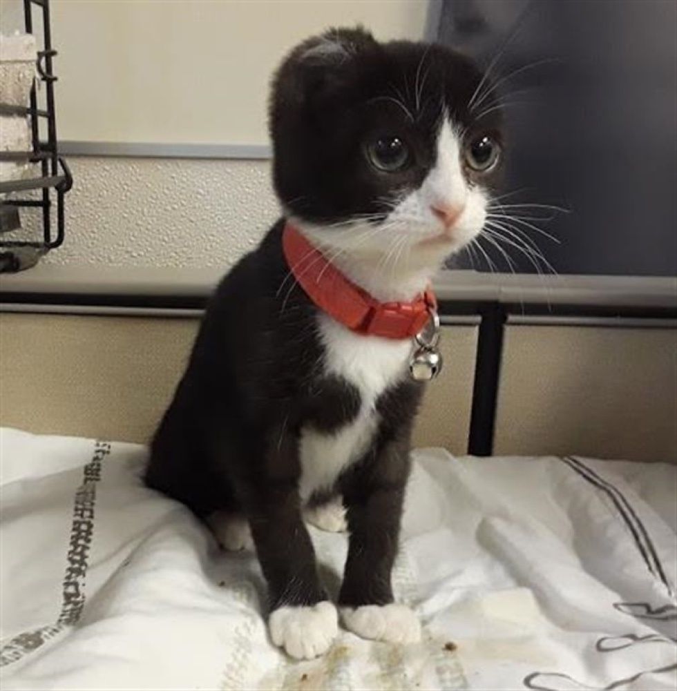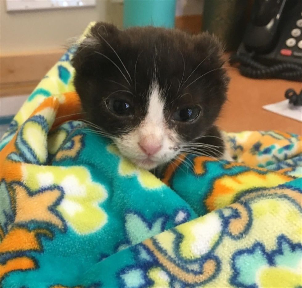 A 3-month-old tuxedo kitten came to the Humane Society Silicon Valley, needing a lot of love and TLC.