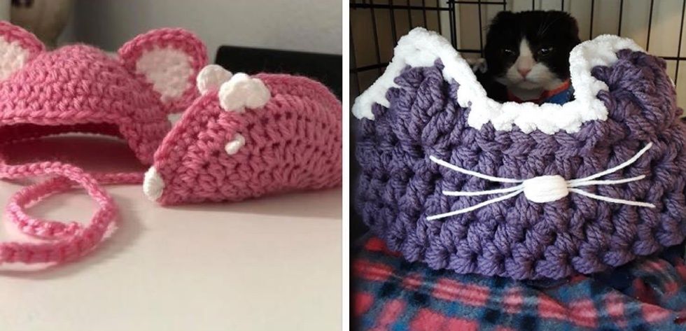 "My friend said Karma needed some ears, so I decided to crochet her some pink ears," Carla told Love Meow.