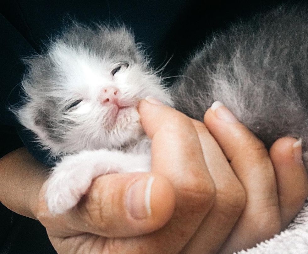 The kitten wouldn't make it alone. Without hesitation, Jade took him home, and he became her first critical neonatal kitten.