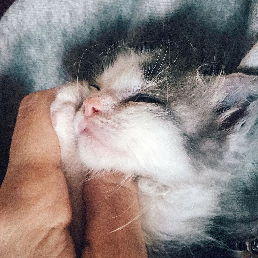 Jade went from store to store to get supplies suitable for a neonatal kitten and continued round-the-clock feedings. She was determined to get the little guy back on his paws with or without sleep.