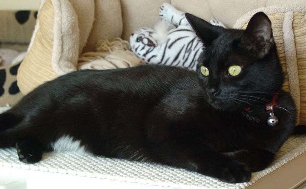 It's been three years since little Charbon came into their life. "He's a big boy now, but still a softie. Gets on very well with our 2 other rescues, Oscar and Silver," Parsons told Love Meow.