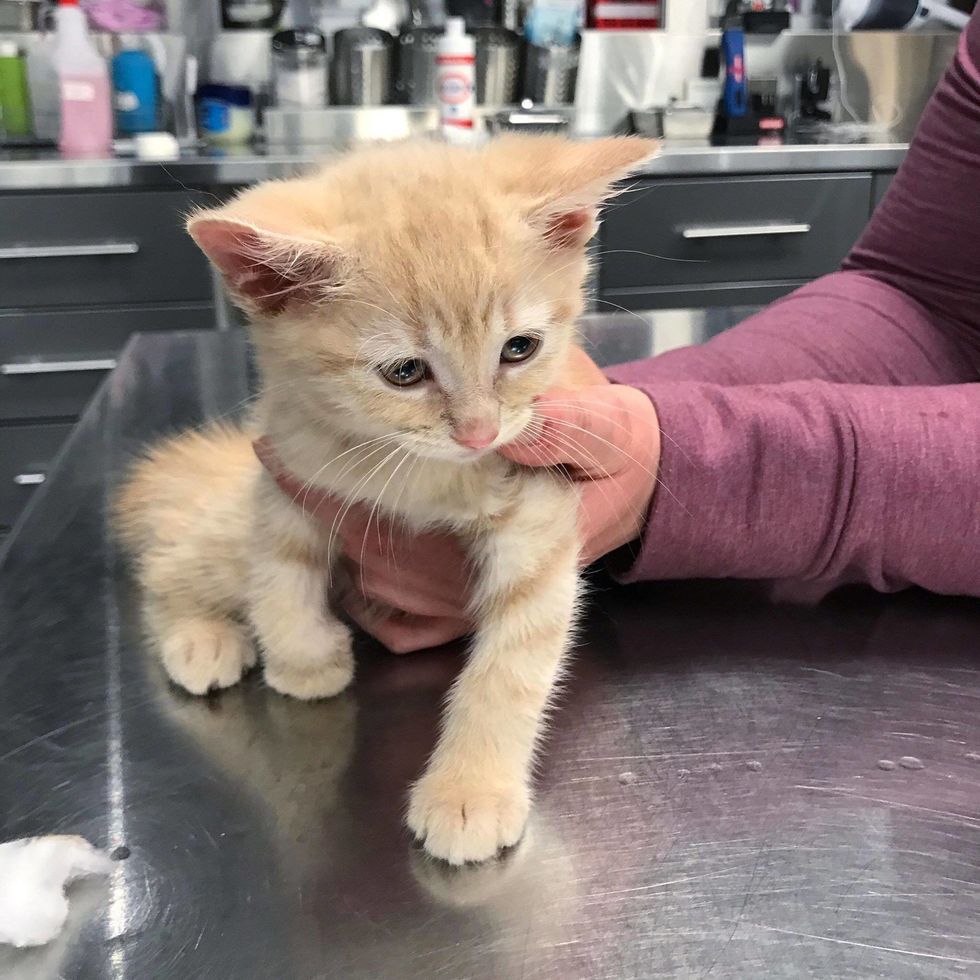 "We named the kitten Angie and took her into our care. She was covered in fleas and ear mites, and was underweight and dehydrated," Chatons Orphelins Montréal shared with Love Meow.