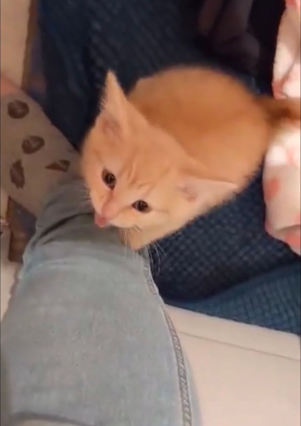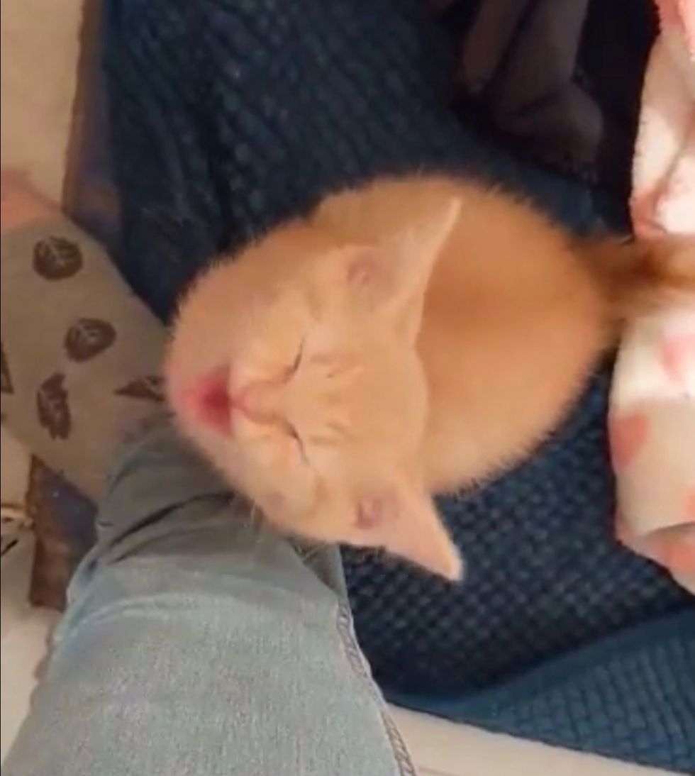 In just a couple of weeks, the shy kitten has made a 180 and blossomed into a little love-bug.