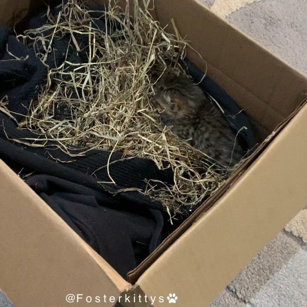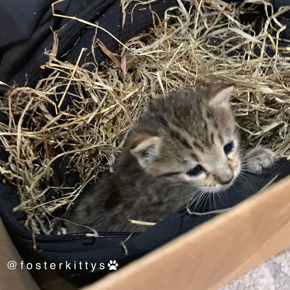 A barn owner discovered a tiny kitten hiding in a pile of hay all alone. They knew they had to help.