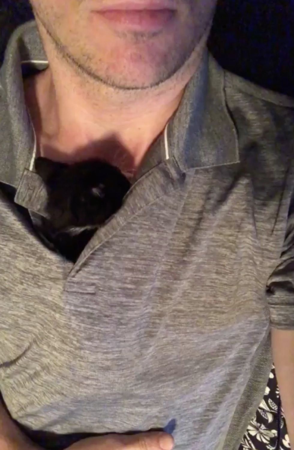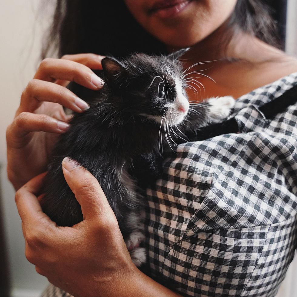 The kitten who has spent her first few weeks of life on the street, now has a full belly, warm bed and loving humans to snuggle with.