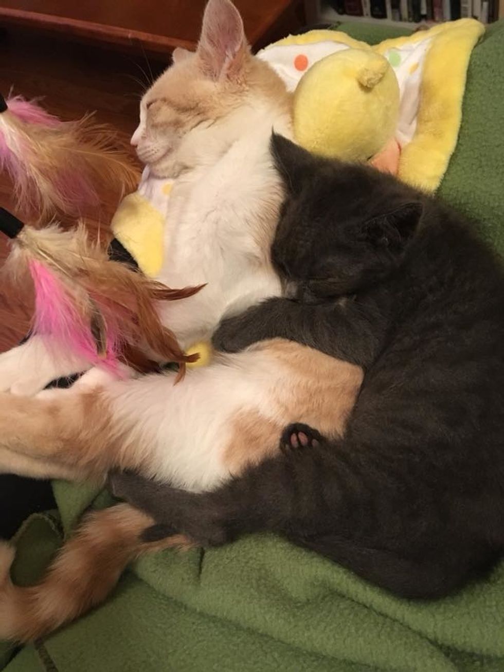 A week later, the rescue took in another kitten named Laverne who came in after a period of quarantine at a local shelter.