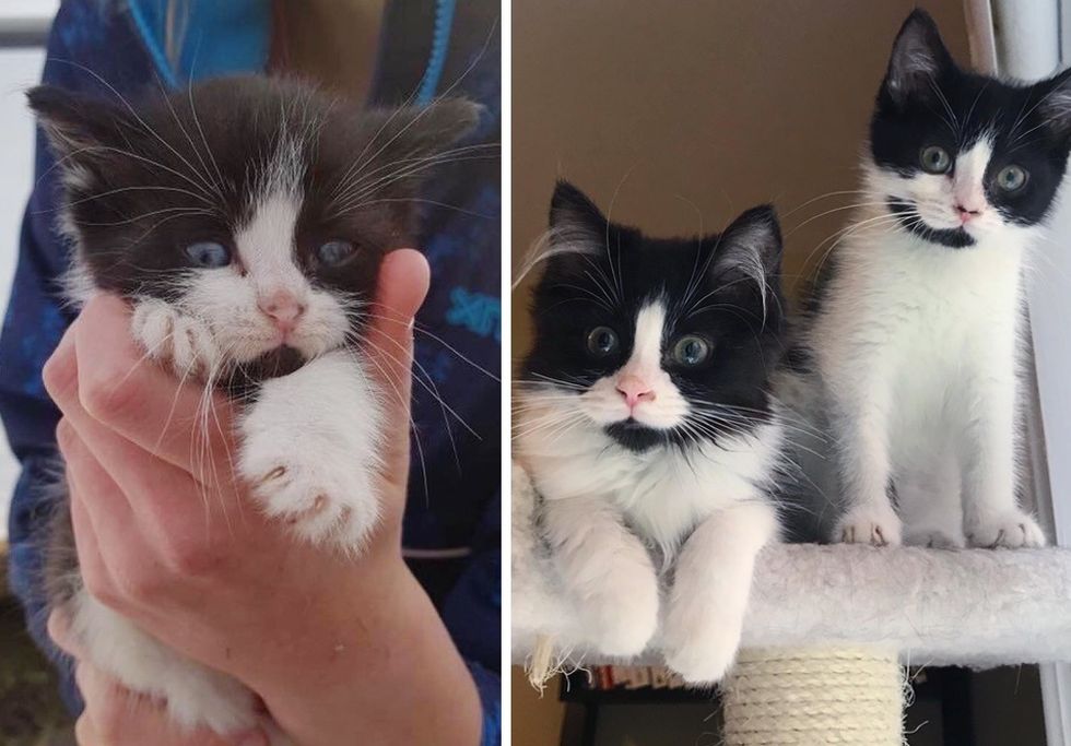 The kittens were less than five weeks old and just skin and bones. Over the next few days, they were nursed back to health and given plenty of cuddles and TLC at their foster home.