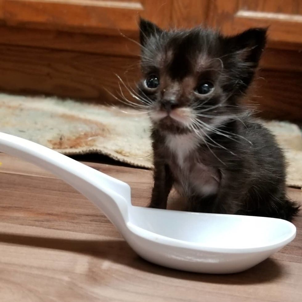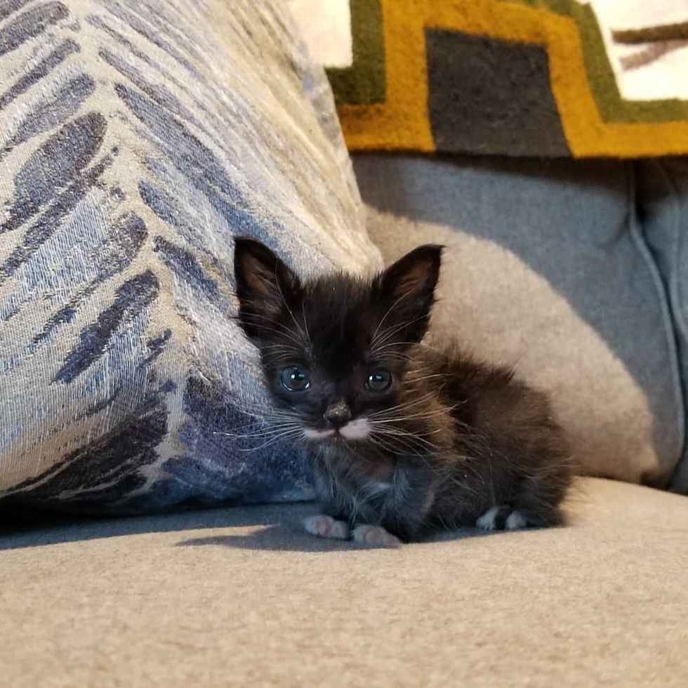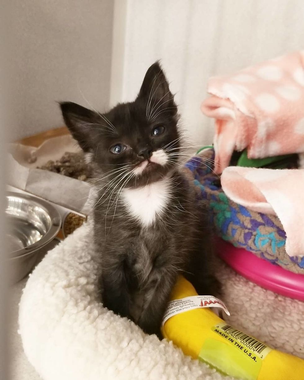 At six weeks old, Francis was about the size of a 3-week-old kitten. He was very small for his age but the tuxedo boy is a fighter.