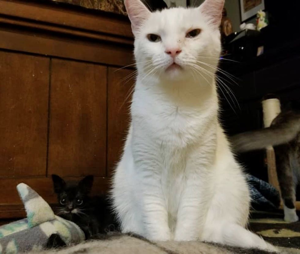 At eight weeks old, the sweet kitten with the perfect mustache has really blossomed.