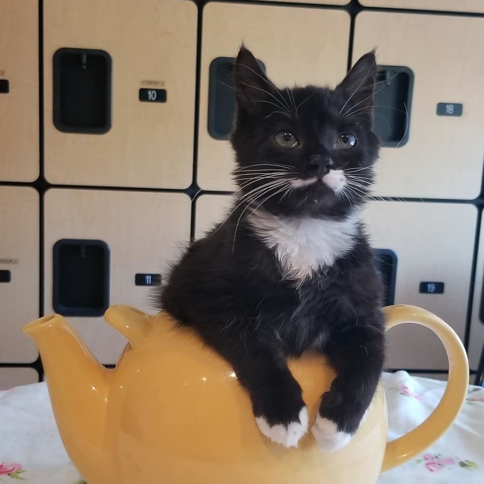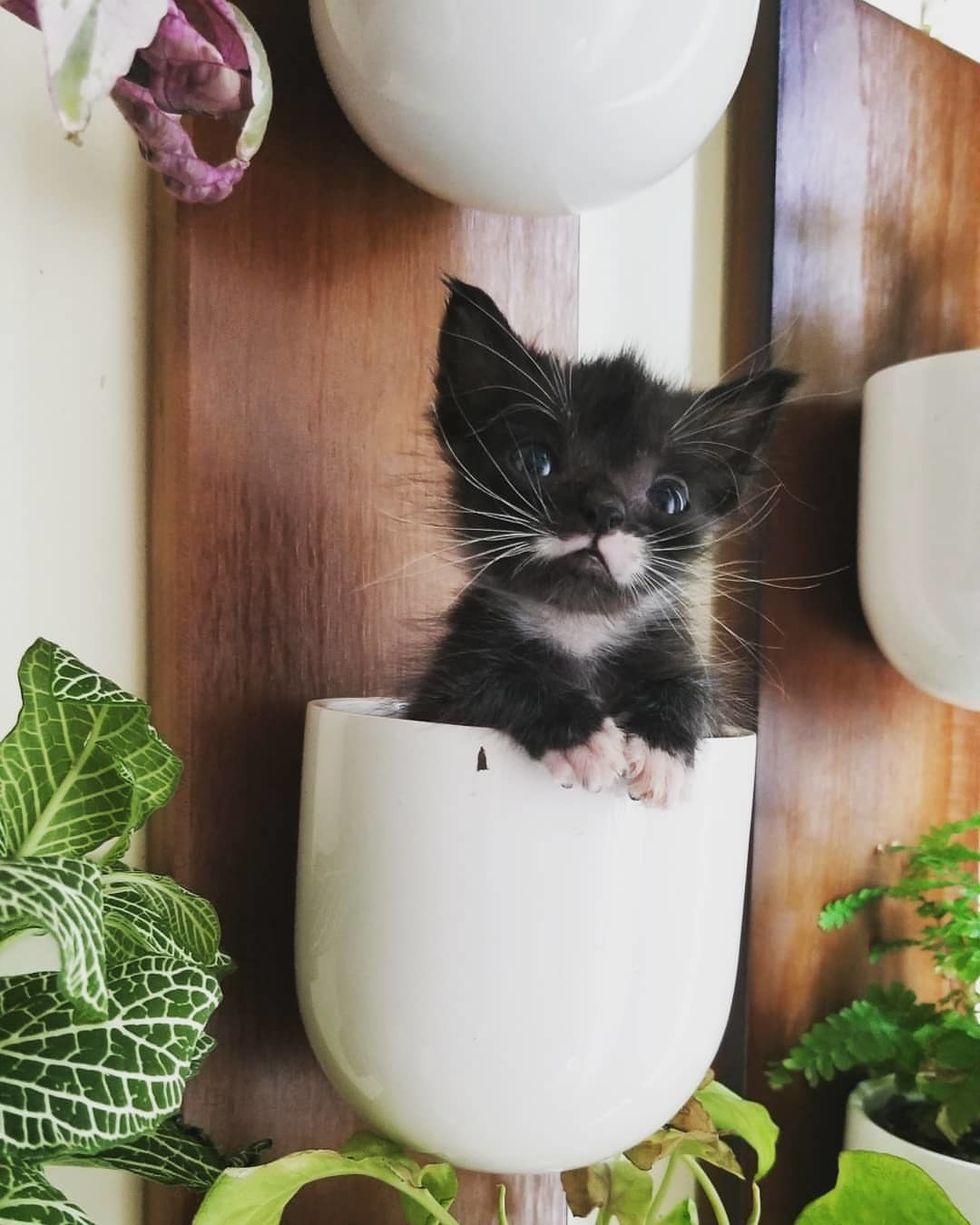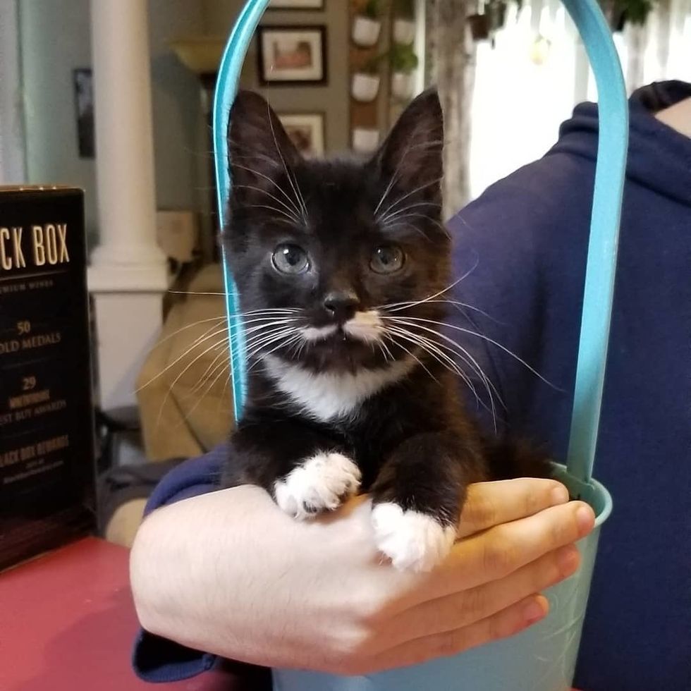 He went from a kitten, the size of a spoon, to now a handsome boy wearing the most dashing tuxedo.