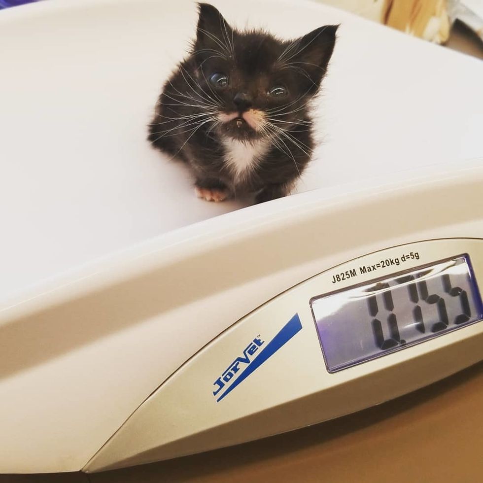 Francis the kitten was three weeks old but only weighed four ounces (113 grams), the size of a newborn. The shelter that had taken him in, knew something was not normal.