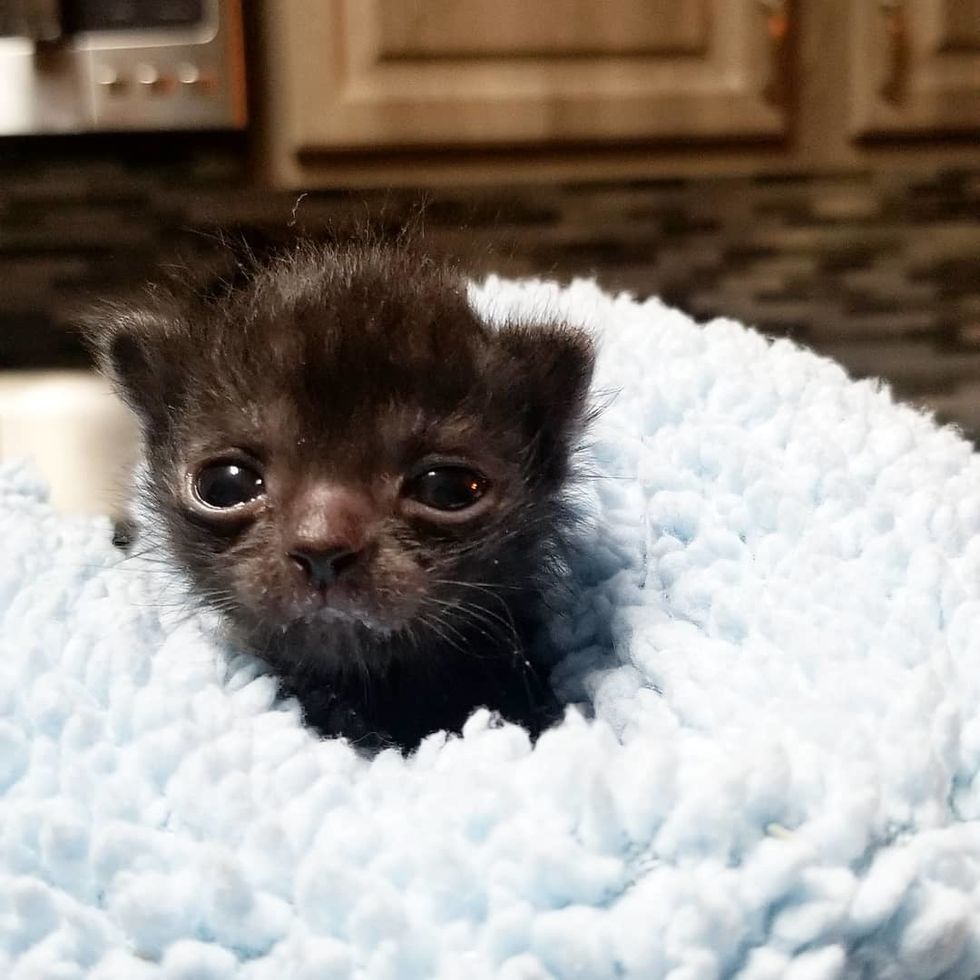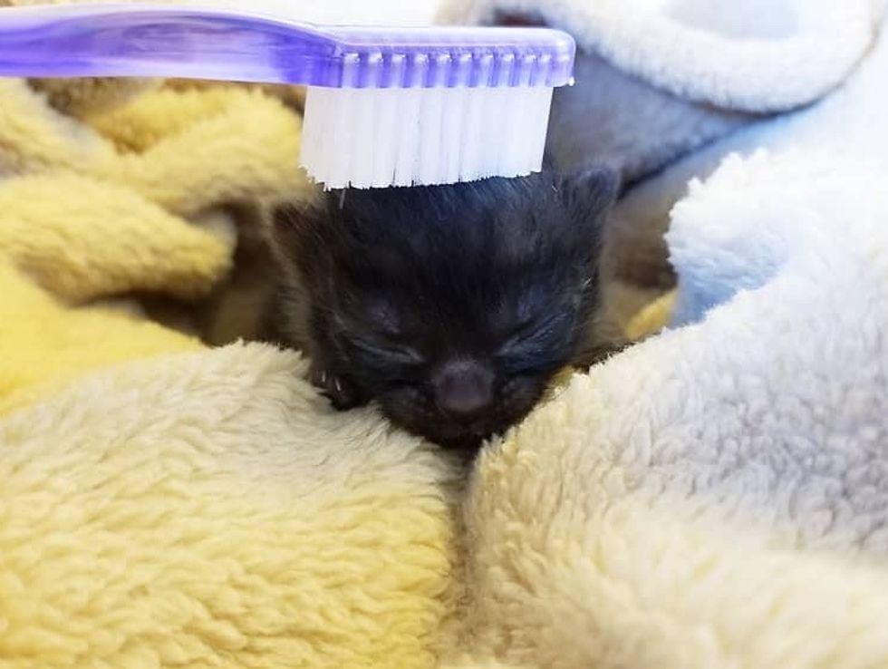 Despite being smaller than a kitten-sized bottle, she was very brave. Ellen Carozza, Feline Licensed Veterinary Technician at Nova Cat Clinic, took her into their charity program, Chris Griffey Memorial Feline Fund, which aims to help kittens in critical condition.