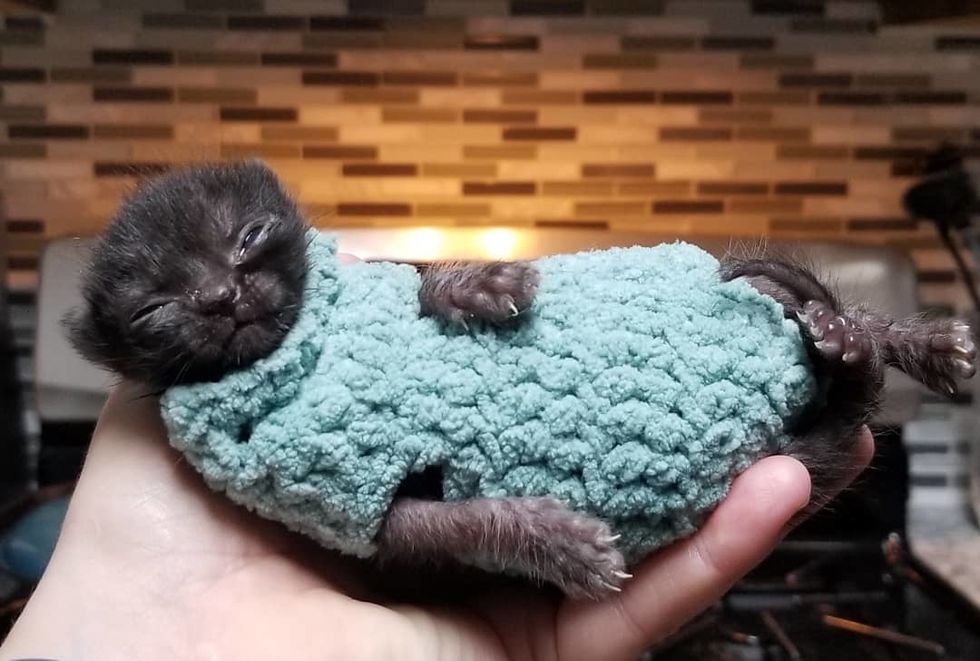 She was given her very own kitten-sized sweaters to help her stay warm and cozy.