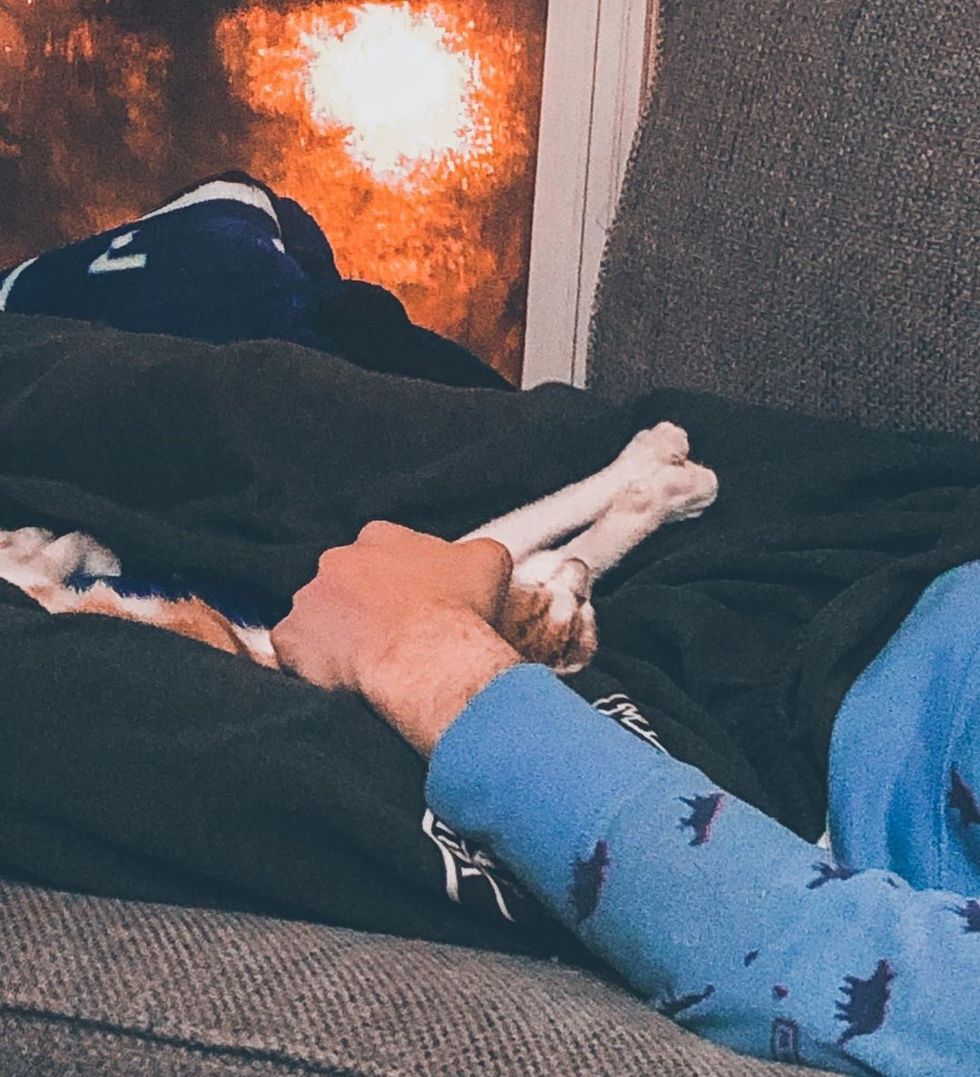 Soon after Clark arrived, cuddles were in order. He crawled into Jessica's arms and settled in for a nap.