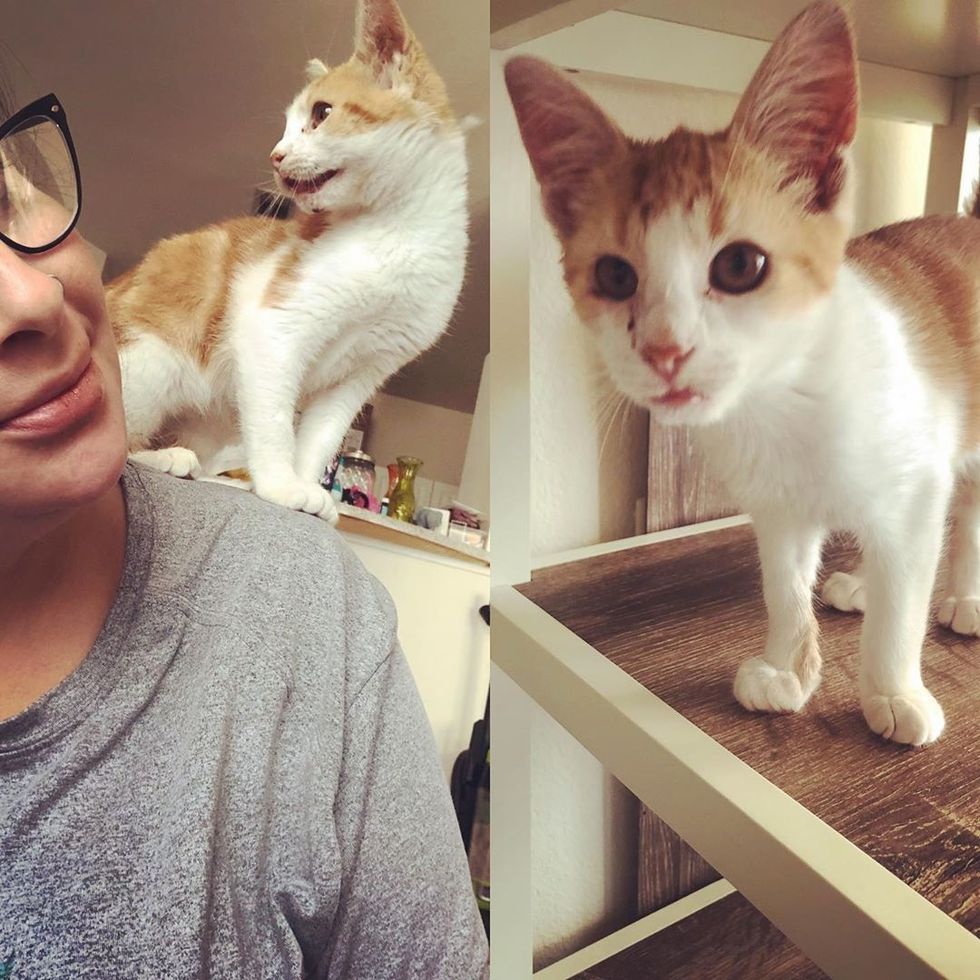 When the kitten was medically clear, Katie took him into her rescue, and Jessica, a volunteer, stepped up to help.
