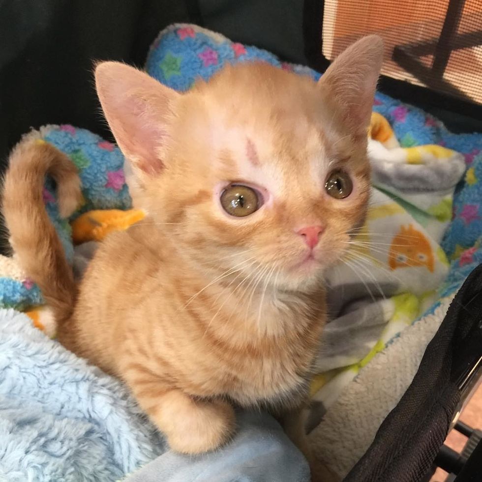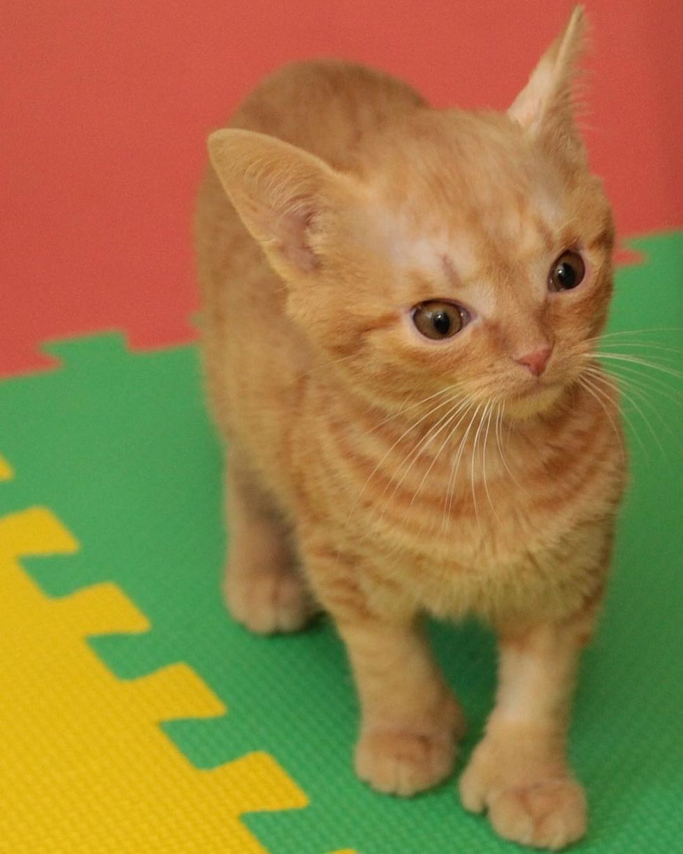 "She acts like any other kitten her age except for some depth perception oddities (which just make her extra silly). She gets to spend a lot of time with other kitties and zooms all over the first floor," Jen said. "Tate is the youngest and smallest animal ever to receive this surgery and survive."