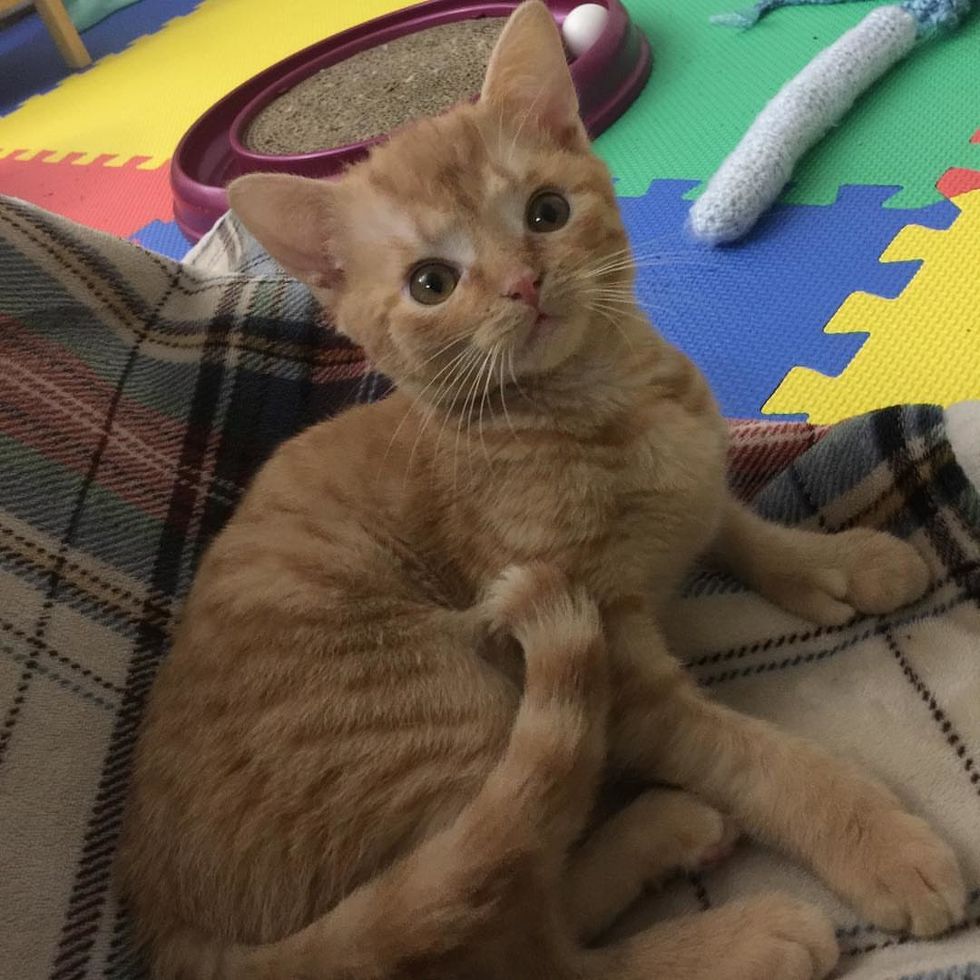 At 14 weeks old, Tate got to run and play like a regular kitten.