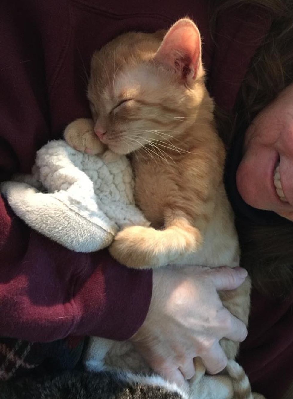 Cuddling with her rescuer really helped her throughout her recovery. She was constantly loved and was never alone.