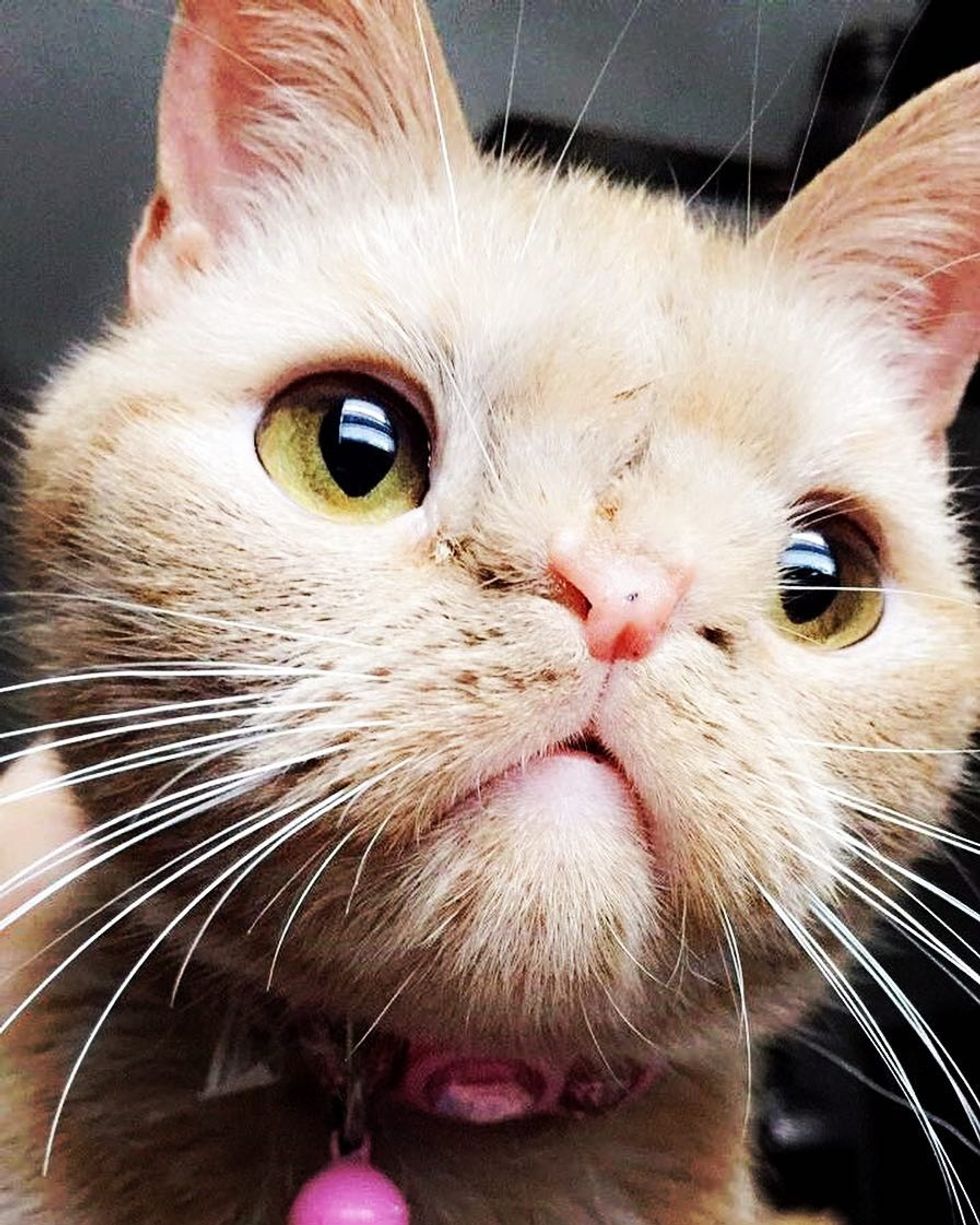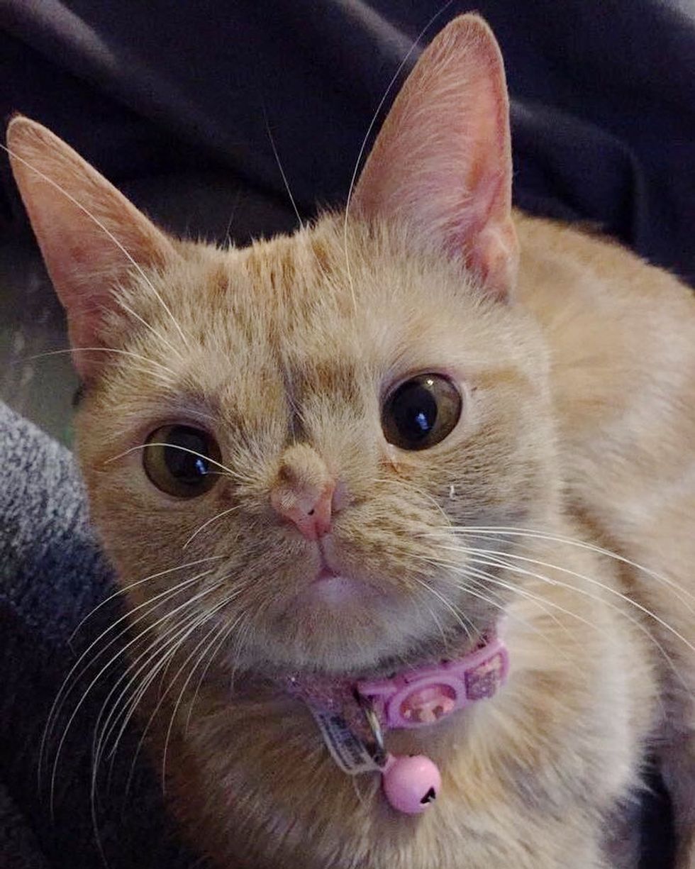 One of them immediately stood out. The little ginger girl whom they named Butternut or Butters, looked a bit different from the rest of the litter. She was born with a crooked nose and appeared to be tailless like a Manx kitty.