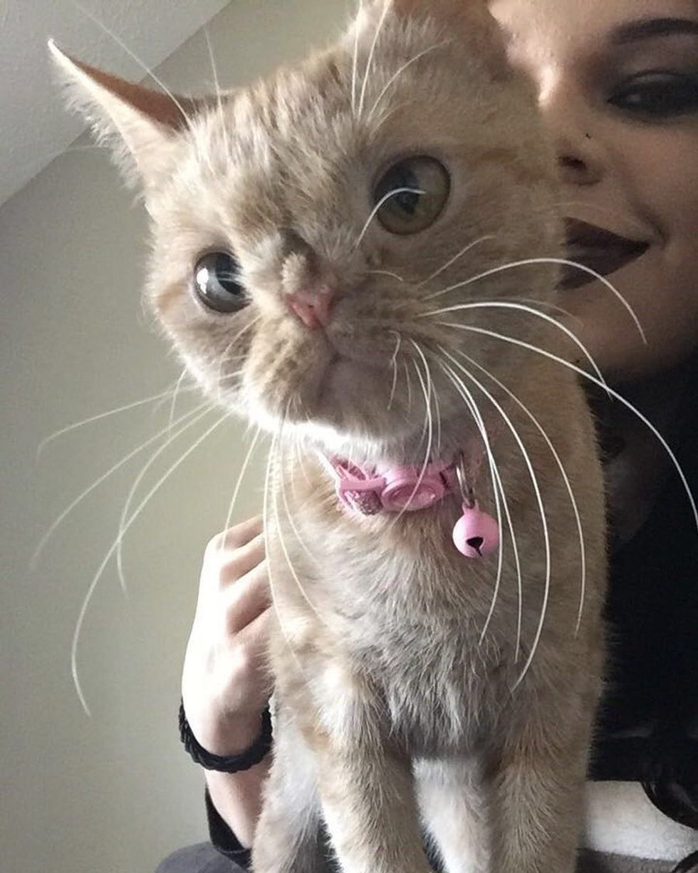 "She is a cuddler and her purrs sound a bit different! But she purrs a lot," Renea added. "She's very ditzy, goofy, and a bit of a drama queen."