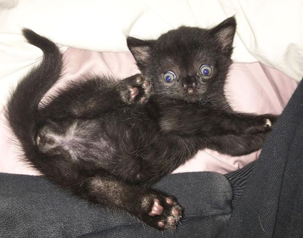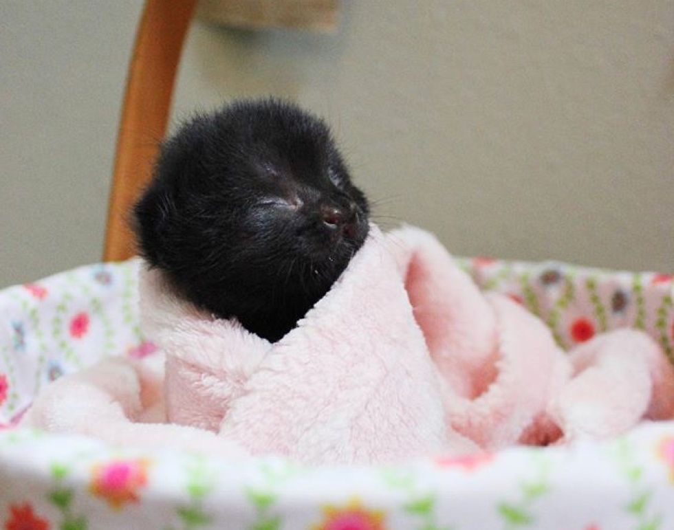 Aela the kitten was found abandoned by the mom in a backyard when she was a day old. Although her eyes were still closed, she showed an incredible will to live.