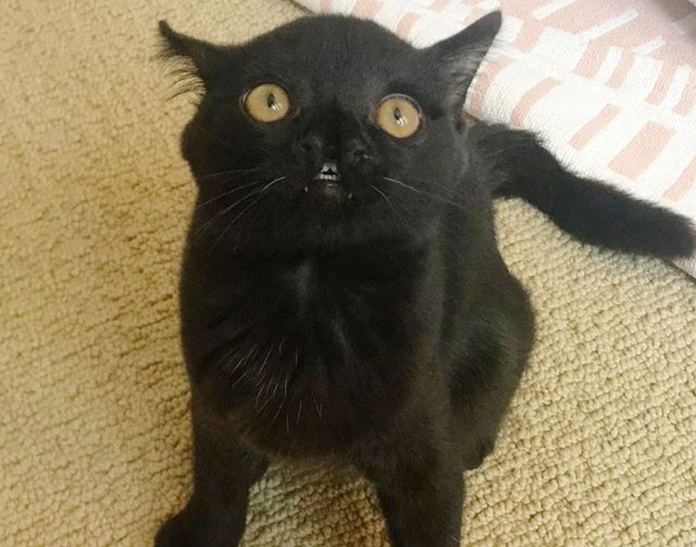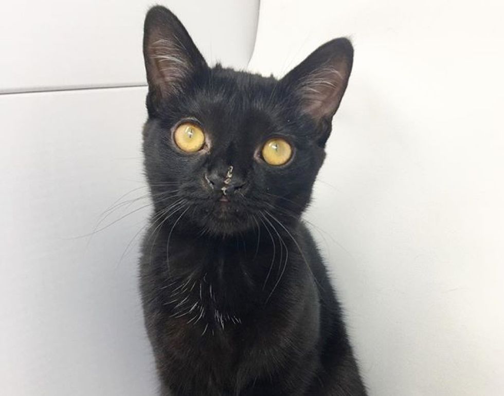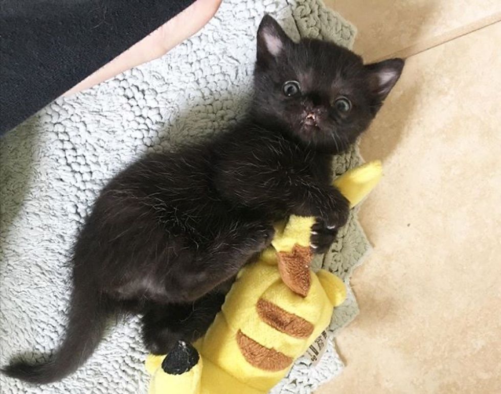 When Ashley took the pint-sized kitten out of the carrier, she was surprised by what she discovered. Aela was born with a facial defect and a nose shaped like a butterfly.