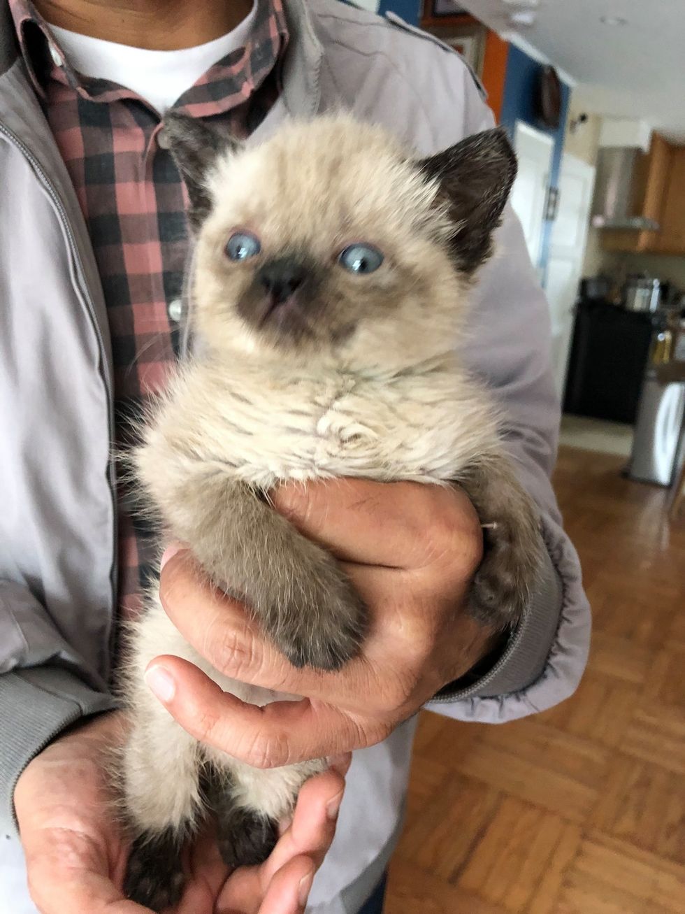 The little guy weighed only one pound when he arrived in foster care. He was friendly and affectionate from the start. "Hydrocephalus kittens can thrive depending on the severity of their condition," Amber said.
