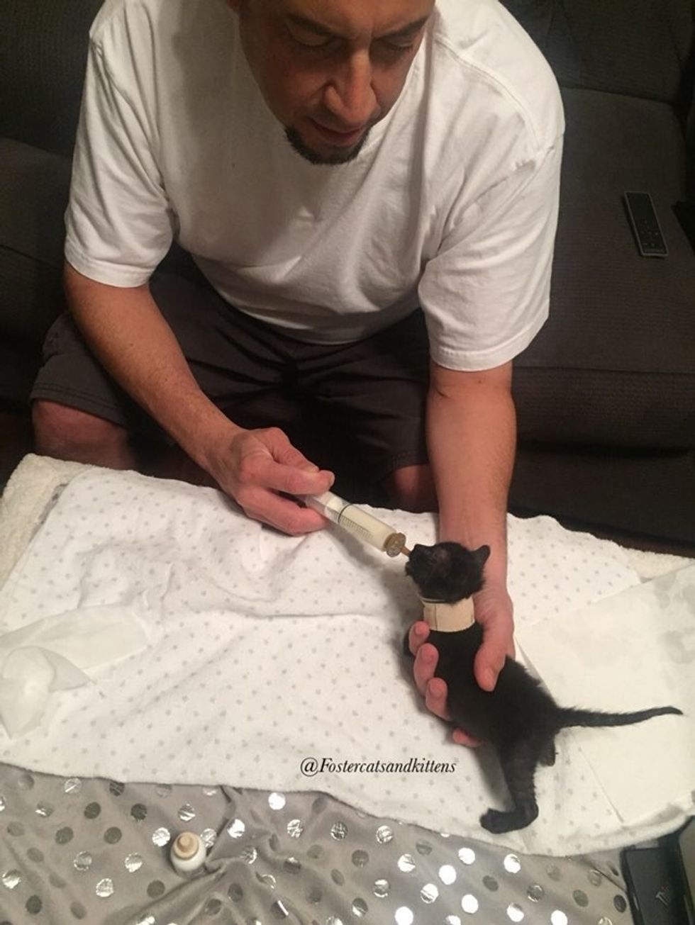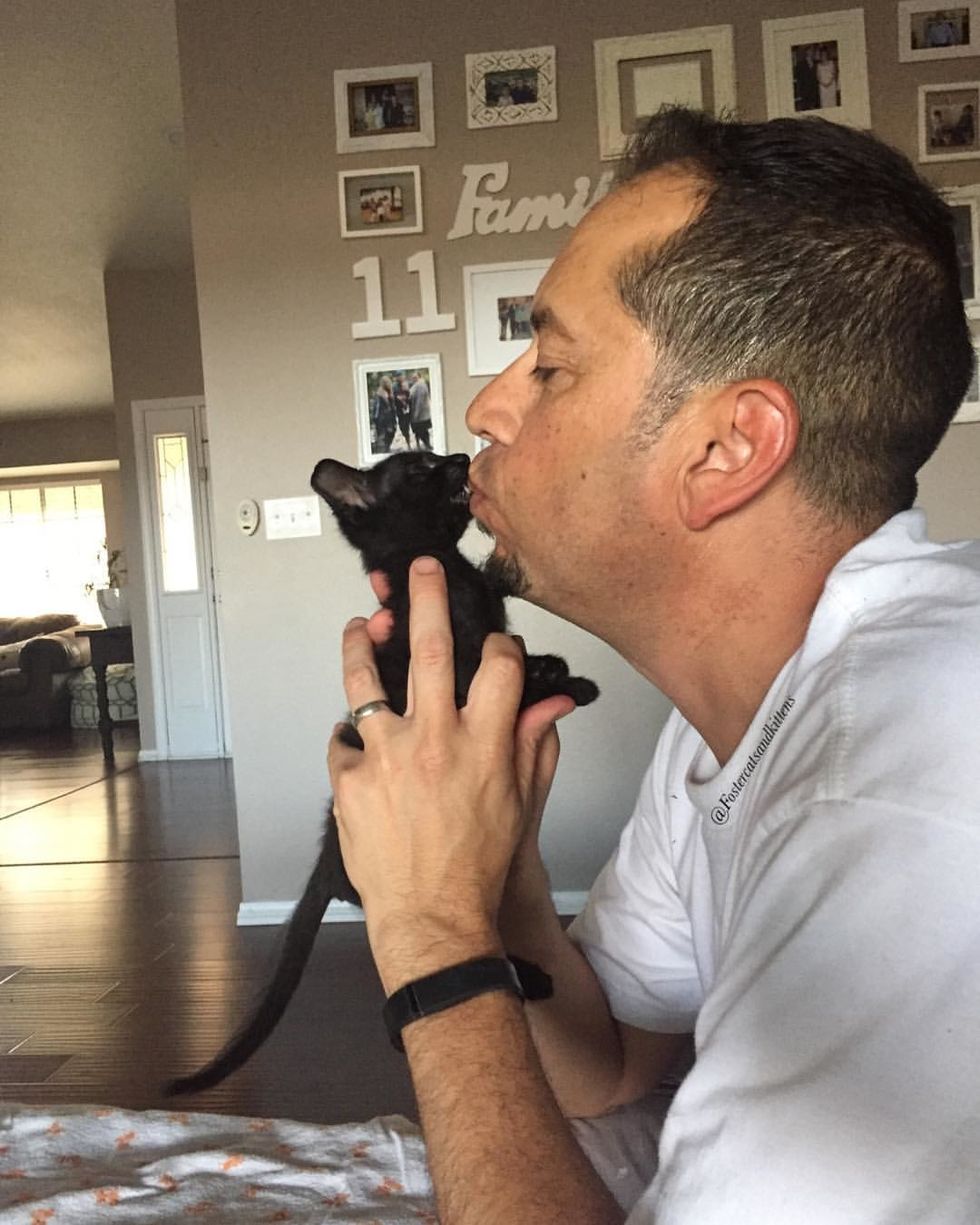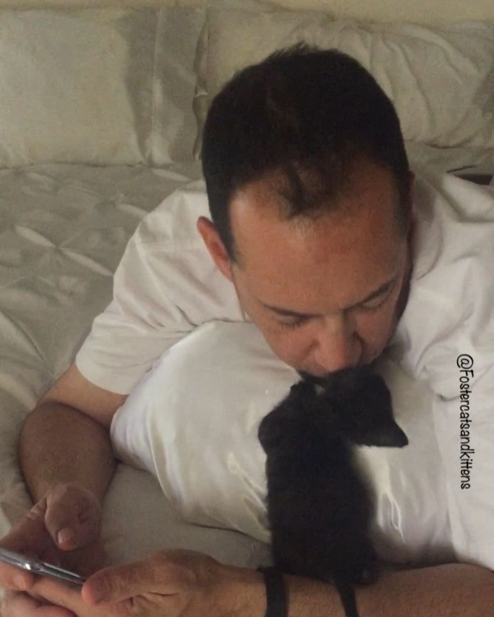 "Foster dad always has a soft spot for the singletons. He feels so bad that they are alone and they don't have a playmate, so he becomes their playmate. Gus adores him (they all do... he's the kitten whisperer)," Danielle told Love Meow.