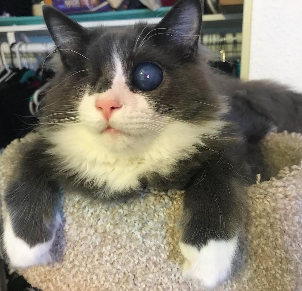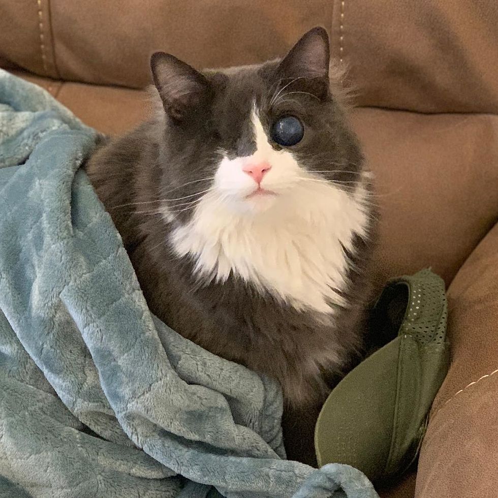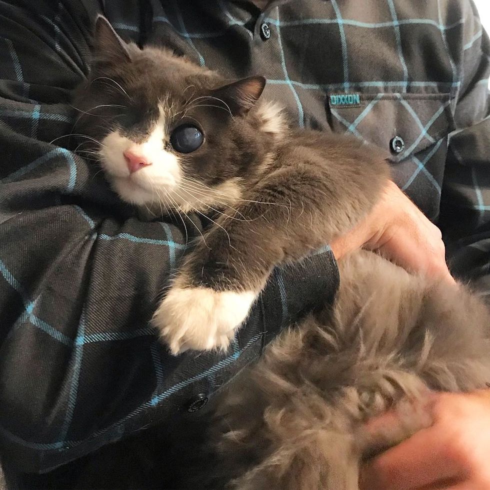 Devin from Colorado came across a Facebook post about a kitten needing a home. "They were looking for someone to 'take this blind cat,'" Devin told Love Meow.