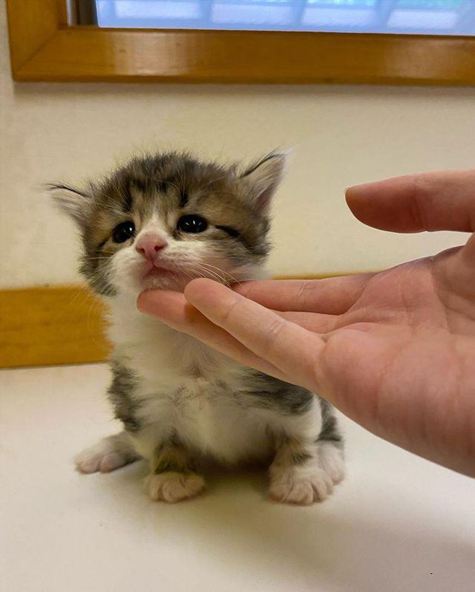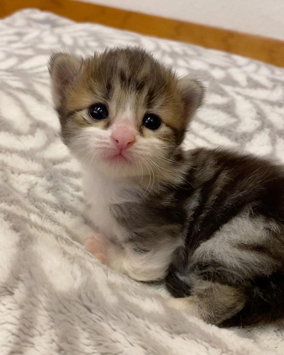 Earlier this year, a pregnant cat was brought to an animal shelter in California in need of help. Shortly after arrival, she went into labor and gave birth to five kittens. One of them was exceptionally small and had some deformity in her front legs.