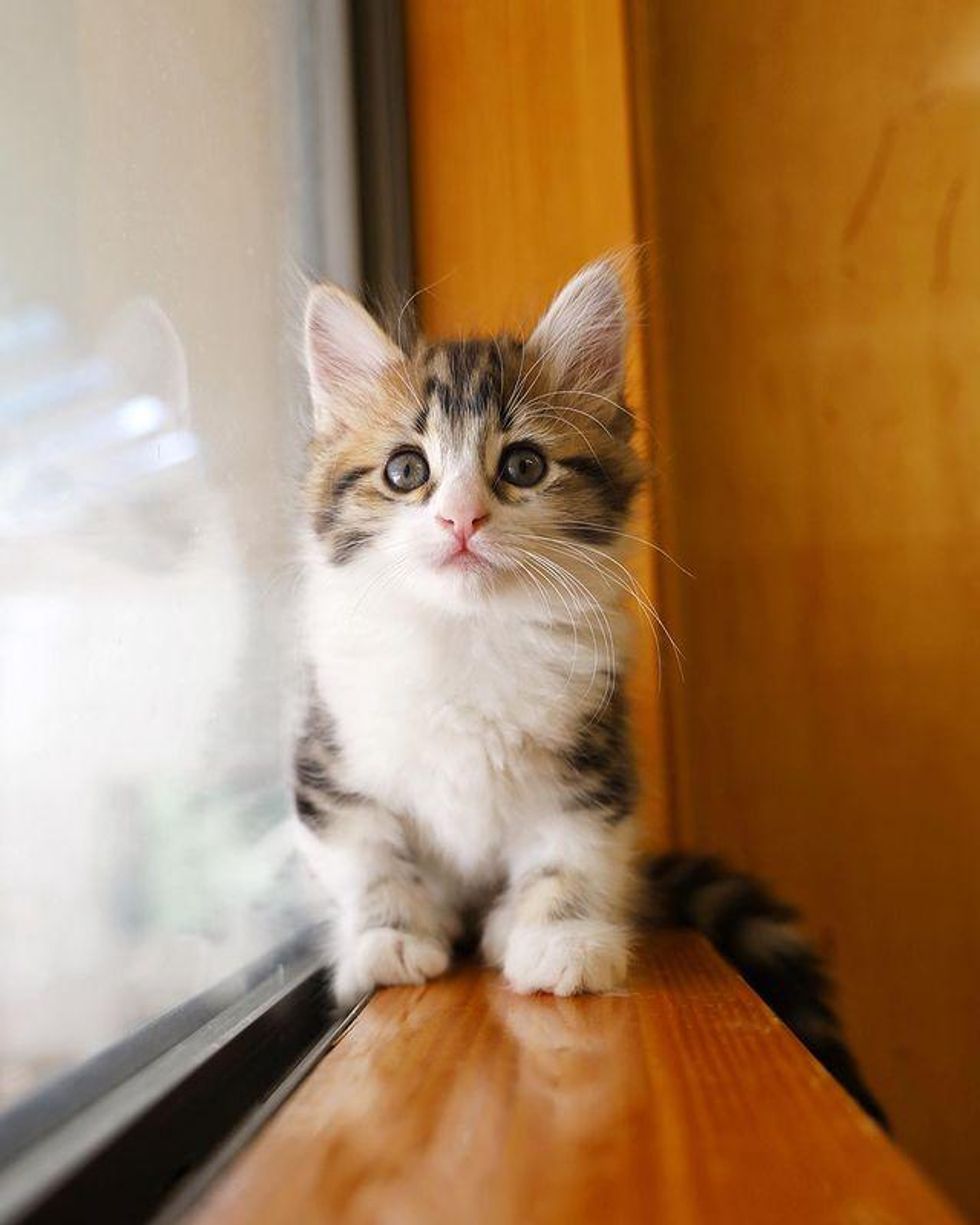 A kitten who stands like a little kangaroo, is determined to live life to the fullest.