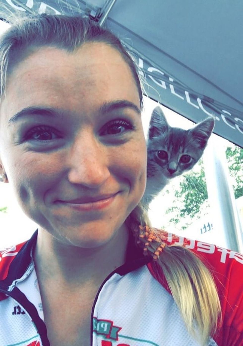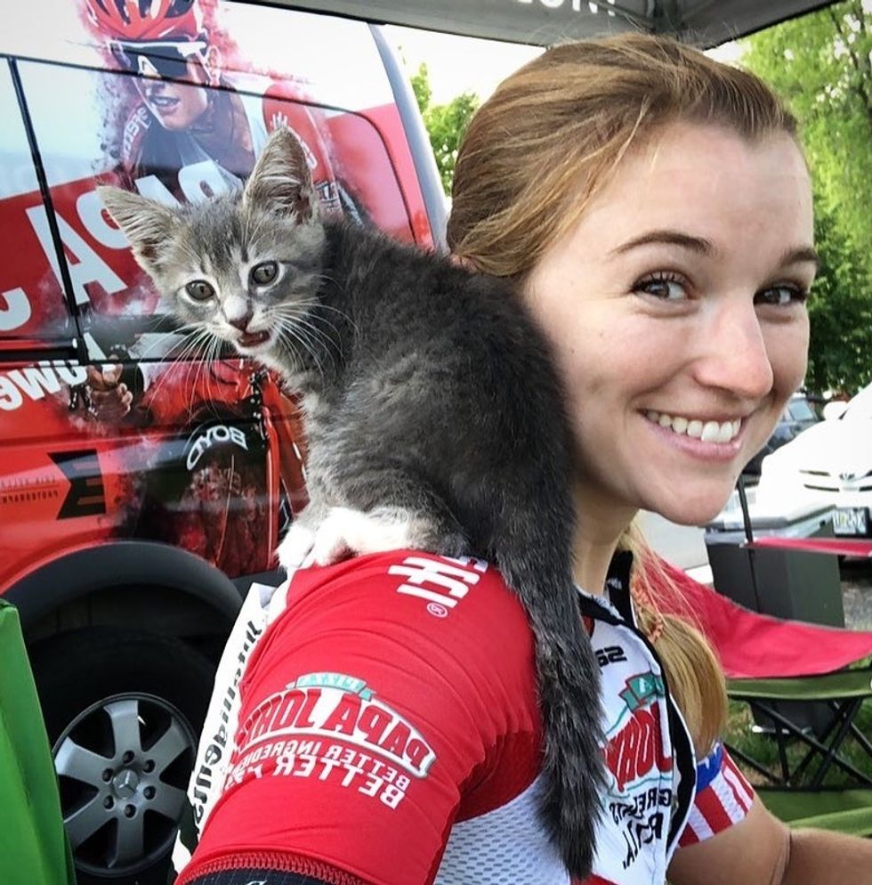 Madison Kelly, a cyclist (@madison_m_kelly), was in South Chicago for a bike race four months ago when she came across a little wandering kitten without a home to go to.
