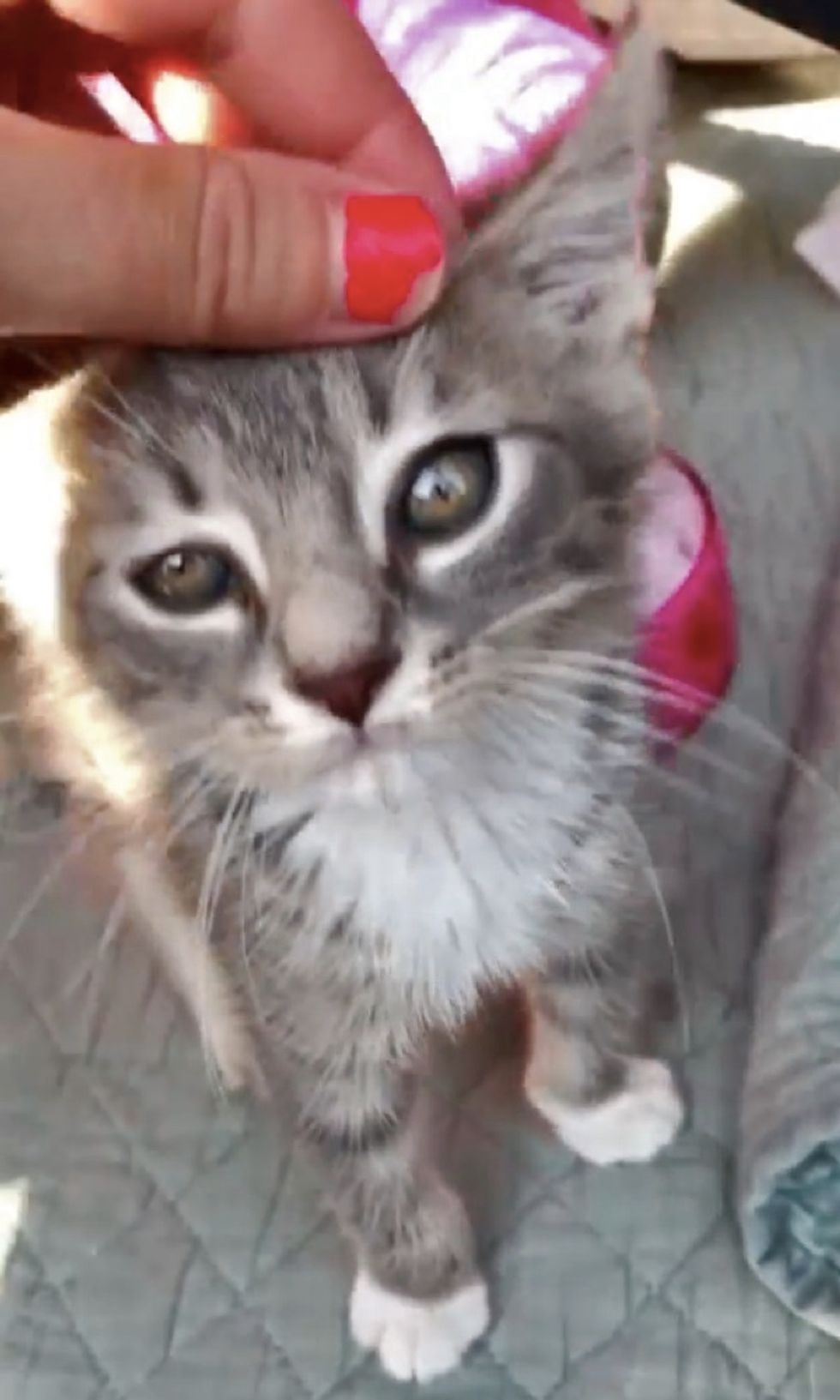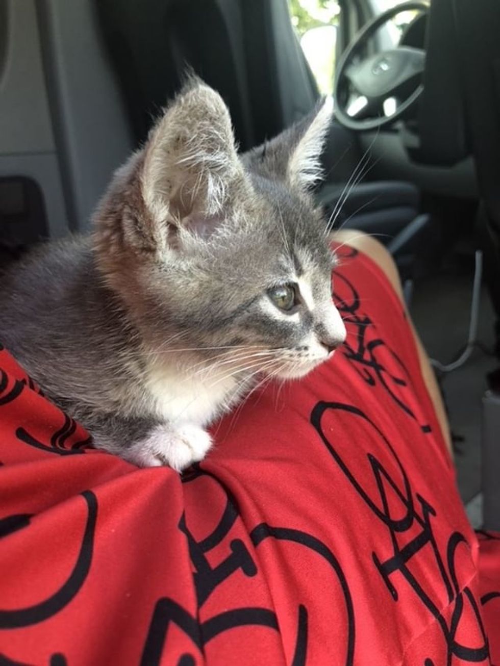 Madison had just finished a race and was on her way to her van when she saw them holding the kitten. As a cat lover, who grew up with her feline best friend, Kitsy, she couldn't resist checking out the little stray.