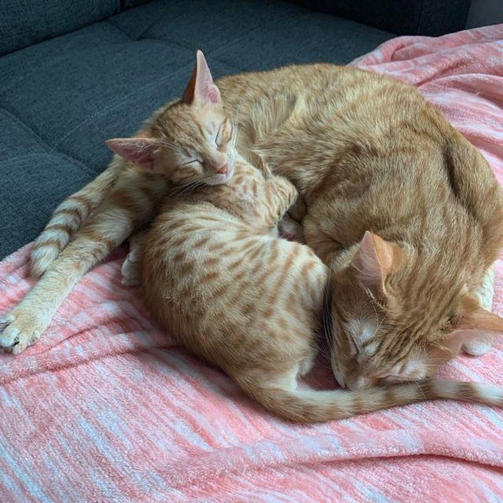 The sweet tabby is thriving and so happy to have a big kitty to look up to, and a constant companion to lean on. Alani is teaching him how to be a proper cat while reassuring him that he is loved.