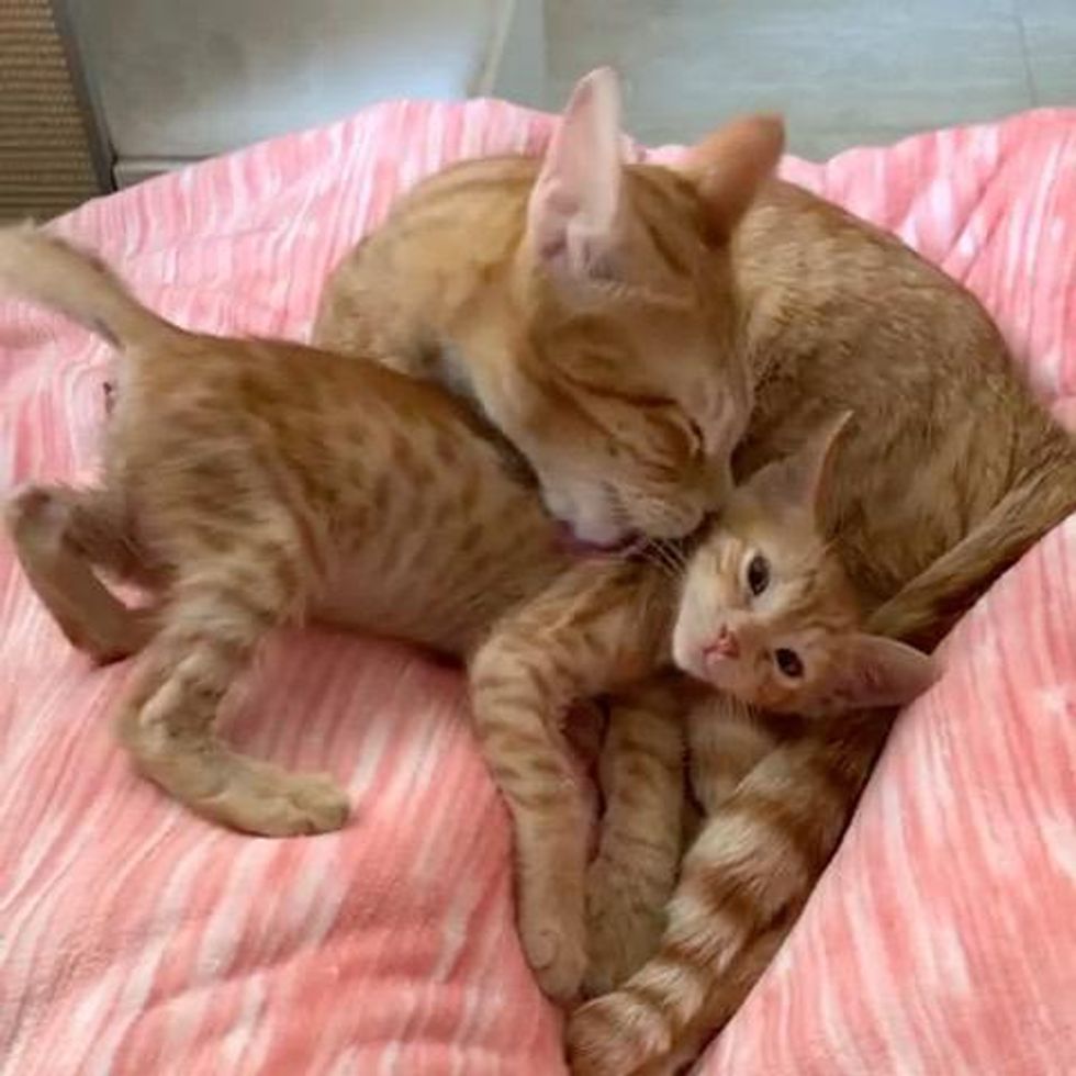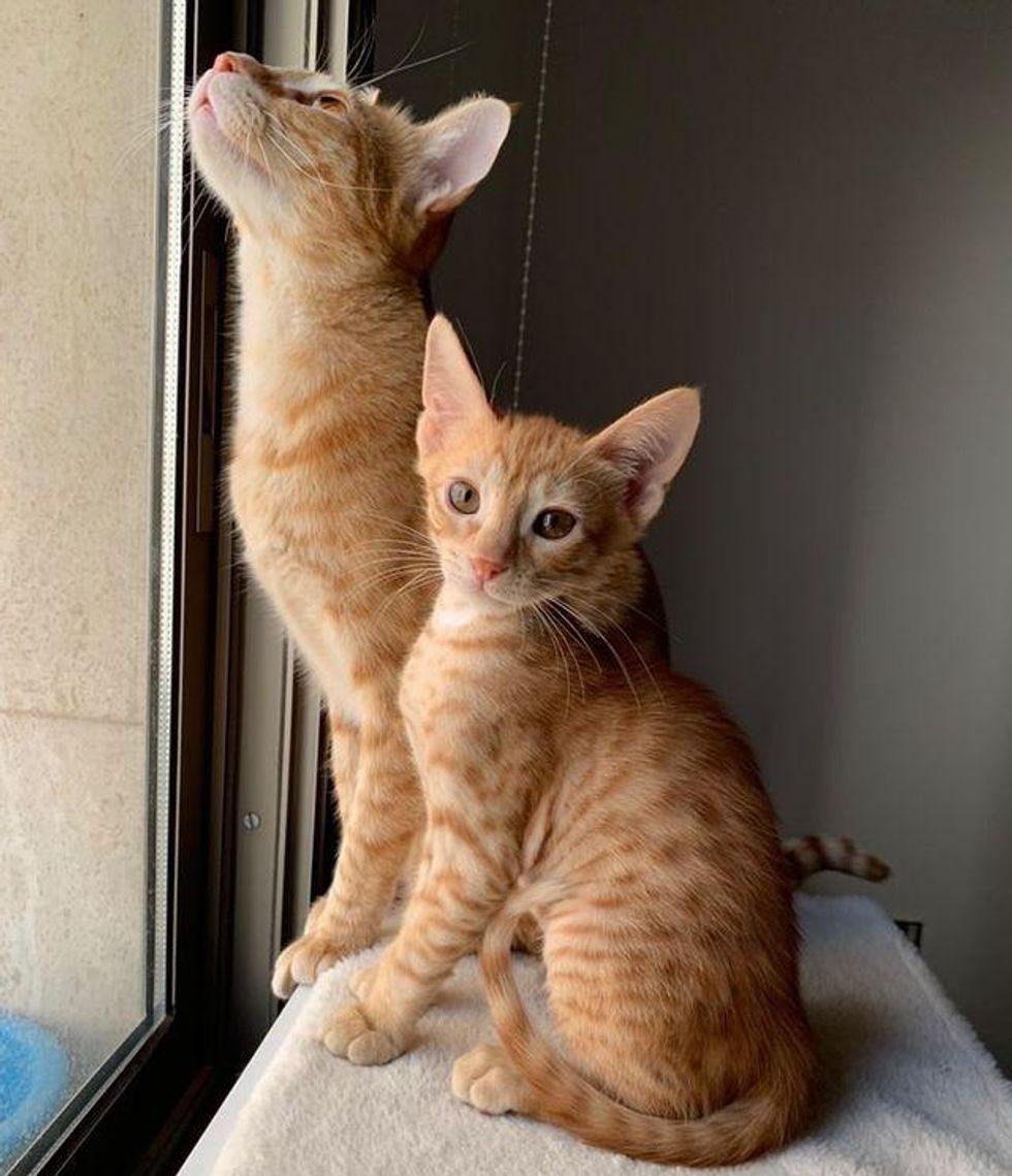An orange kitten who was found as a stray, befriended a family cat and decided to follow her everywhere she goes.