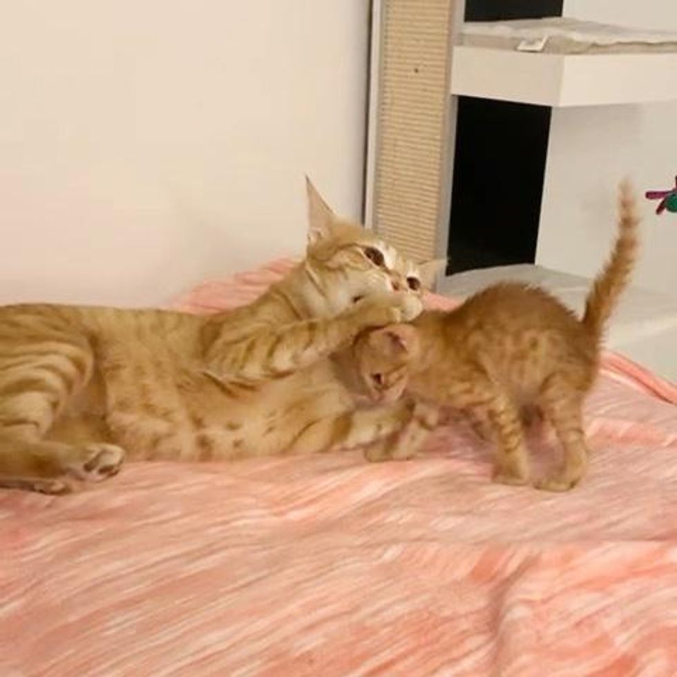Thor feels safe with his new best friend around. He's become her little shadow and even tries to imitate her when they play. Alani has taken the kitten under her wing and showers him with love.