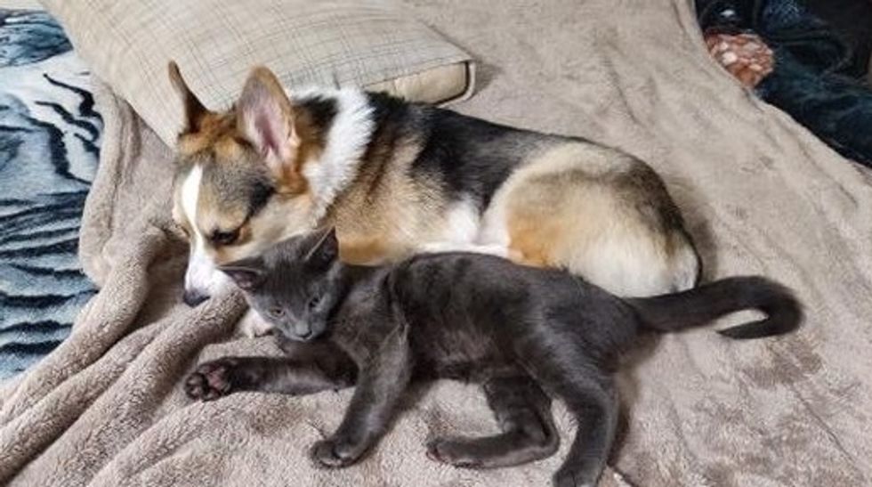 Related story: Stray Kitten Sprints Up to Man and Dog and Determined to Follow Them Home