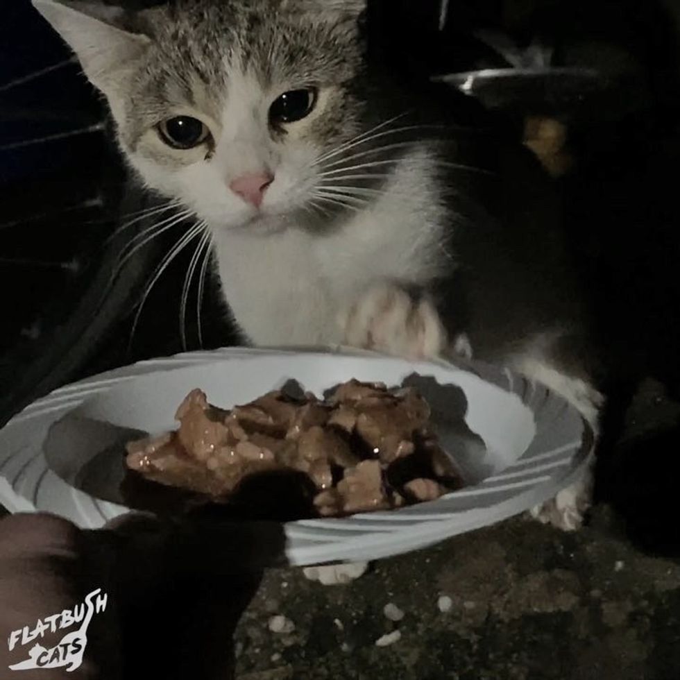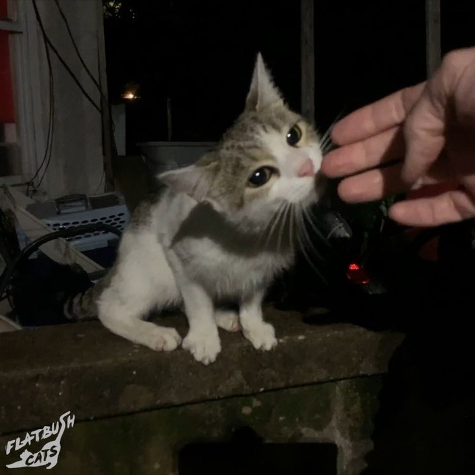 Flatbush Cats, a TNR (trap-neuter-return) rescue in Brooklyn, was out caring for community cats (all spayed and neutered) when he noticed a new face. A young kitty showed up but was too shy to come near. When Will tried to approach her, she quickly ran away.