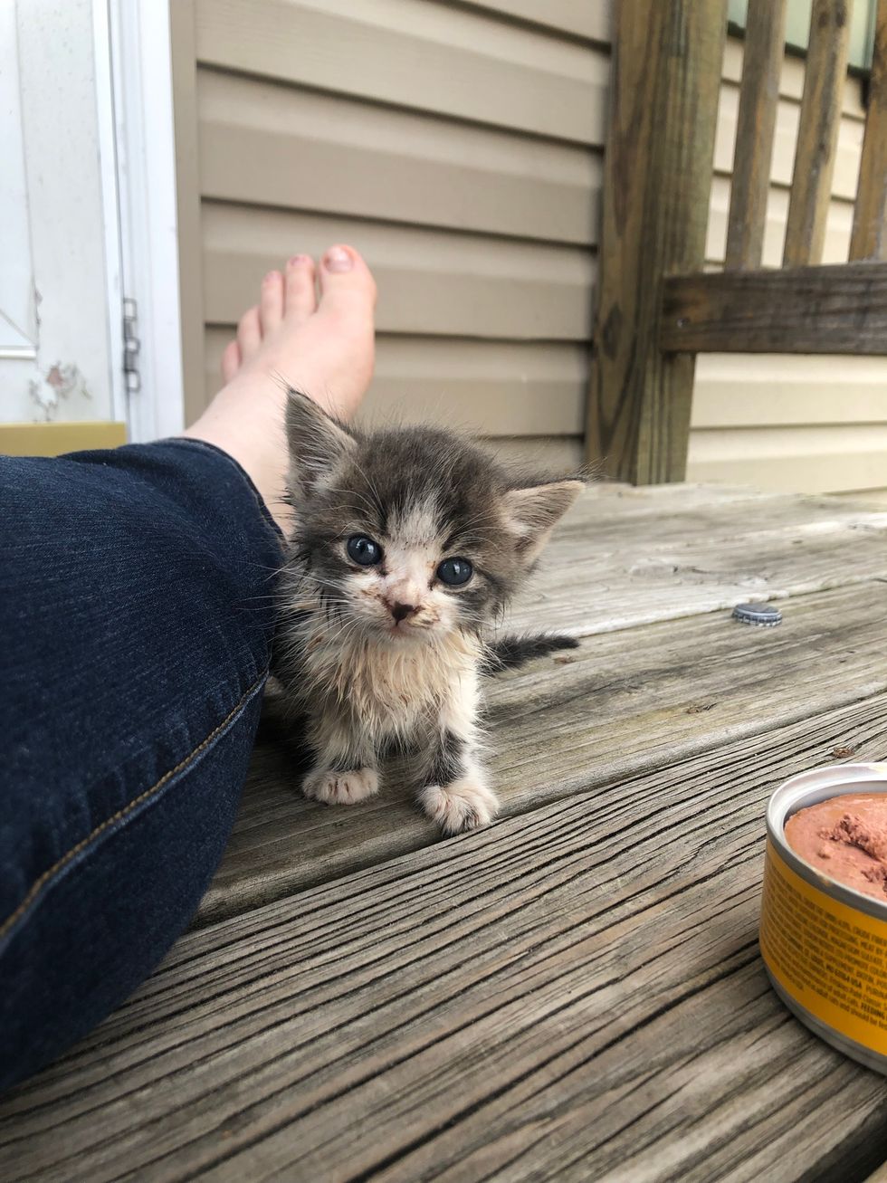 A little stray kitten ran up to a couple yesterday evening when he wandered to their house in West Virginia.