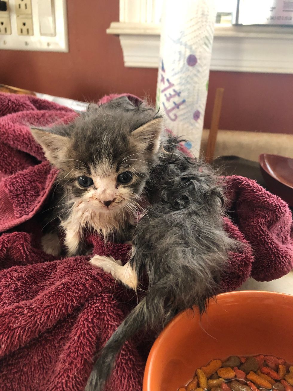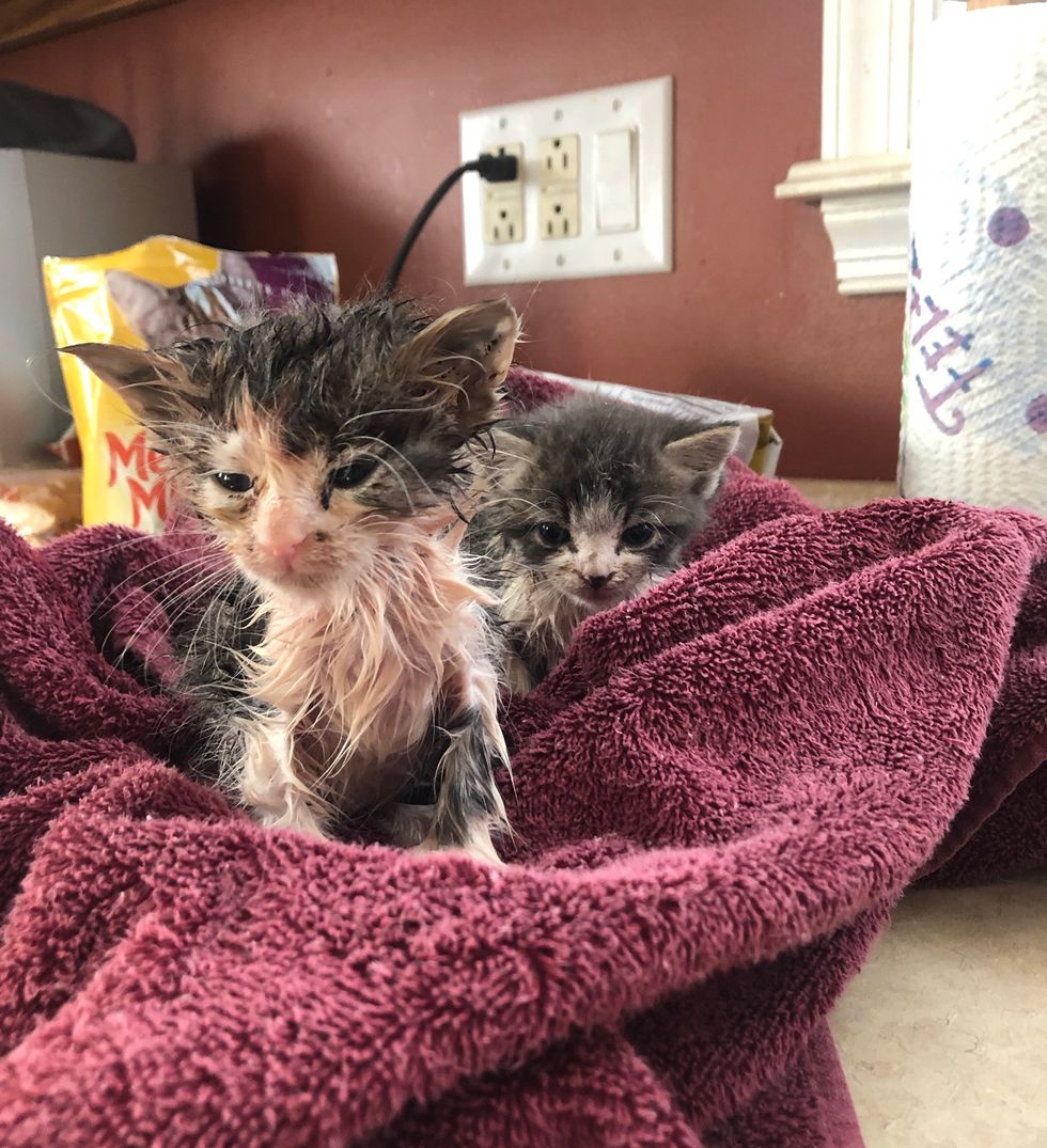 The kittens (named Theon and Yara) were in rough shape with fleas crawling all over their tiny bodies. The couple, both animal lovers and pet owners, started washing them, trying to get rid of all the pesky fleas. After several baths, they gave the kittens some food and a warm bed to nestle in.