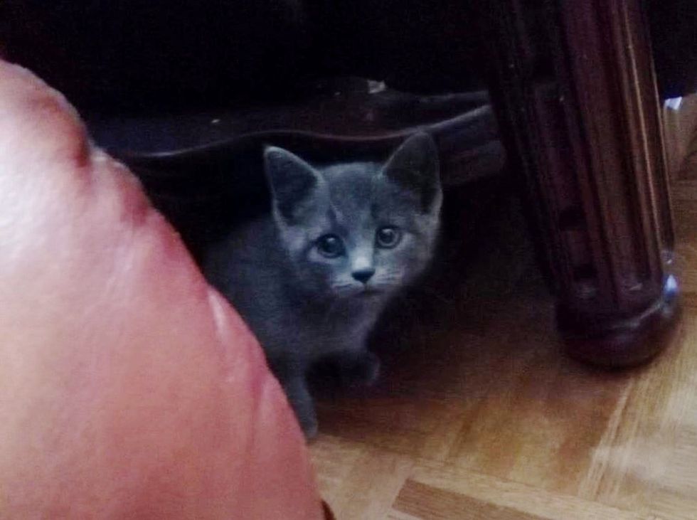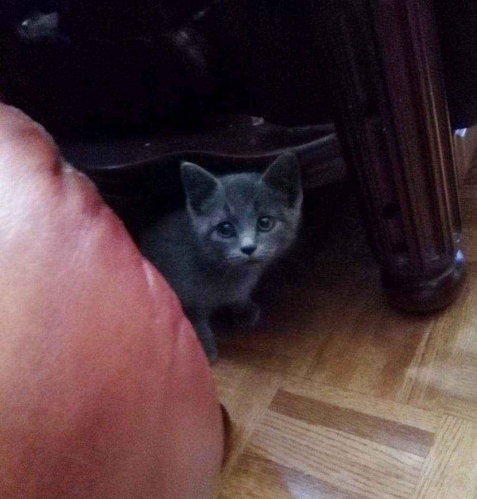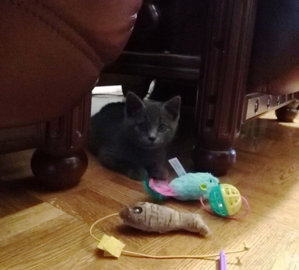 The kitty, whom they named Oreo, quickly took refuge under a couch to secure a safe spot.
