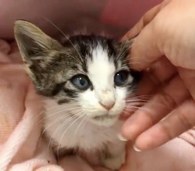 That's when she noticed some old and fresh scars on the kitten and a wound on his belly. At just a few weeks old, the kitten had lived a tough life on the streets.