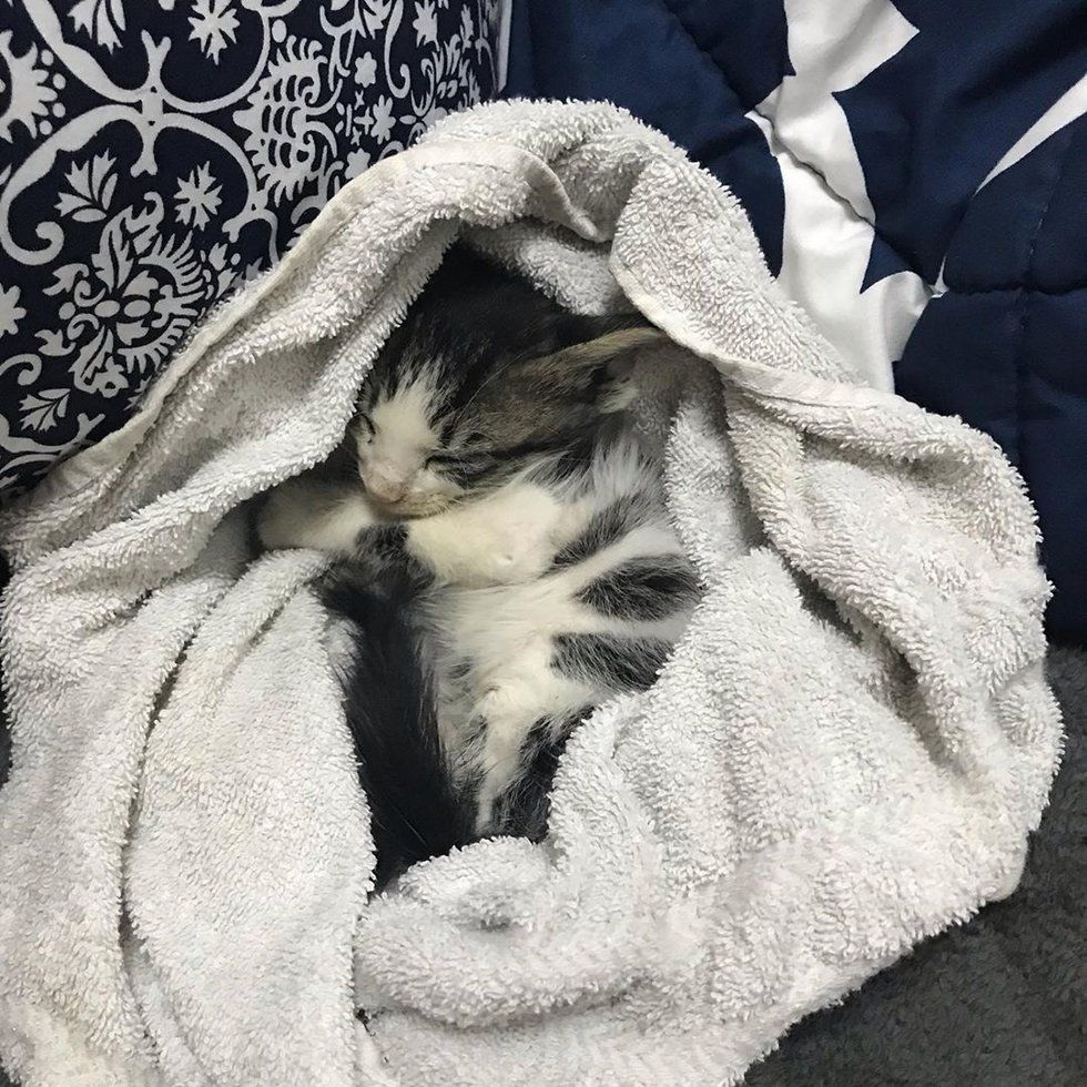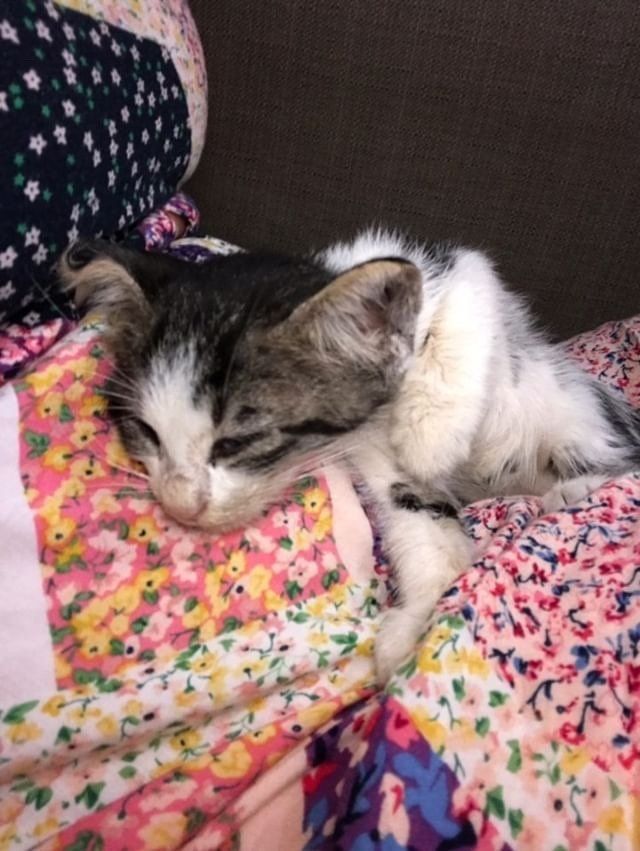 Just when the kitten began to perk up, he faced yet another challenge. One night, Marisa spent hours cuddling with him, thinking it would be his last.