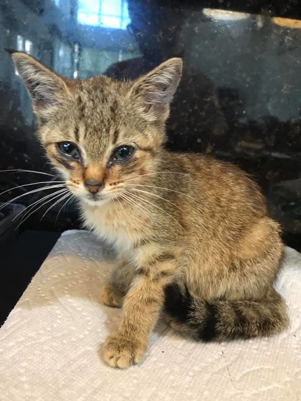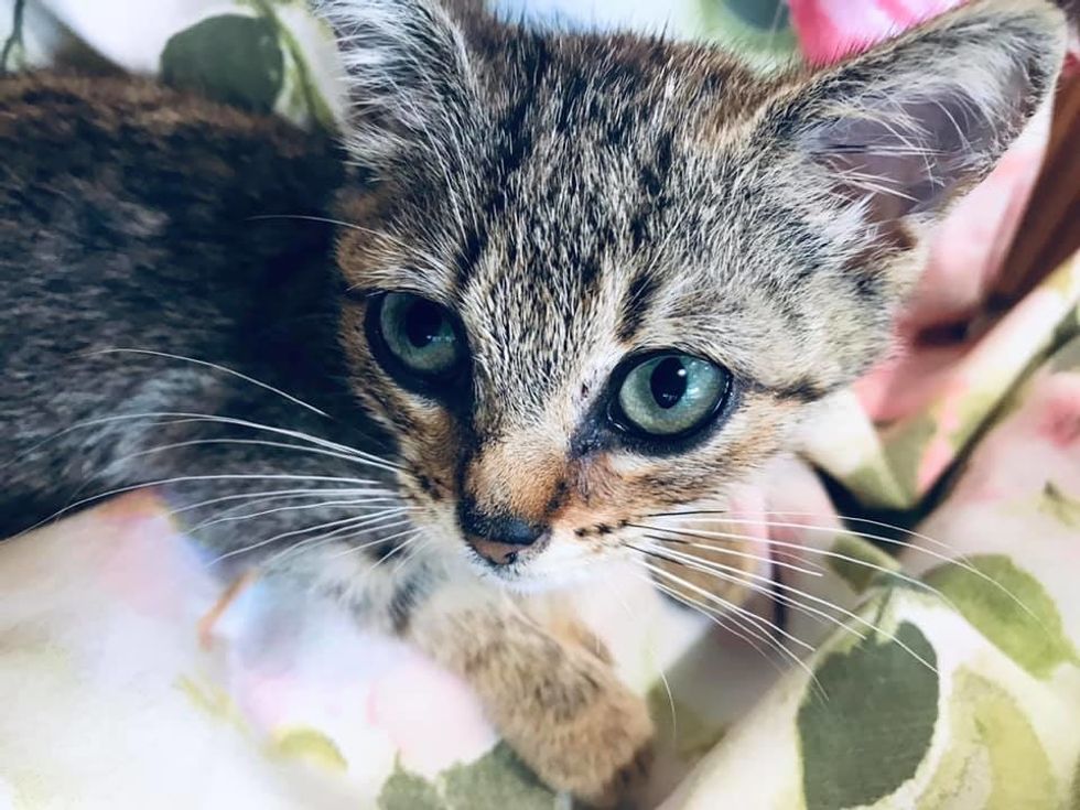 The kitten was infested with fleas and lice, had parasites and appeared to be anemic. Carmen gave her a much-needed bath and began treating and supplementing her to help her get back on her paws.