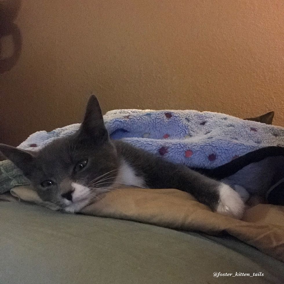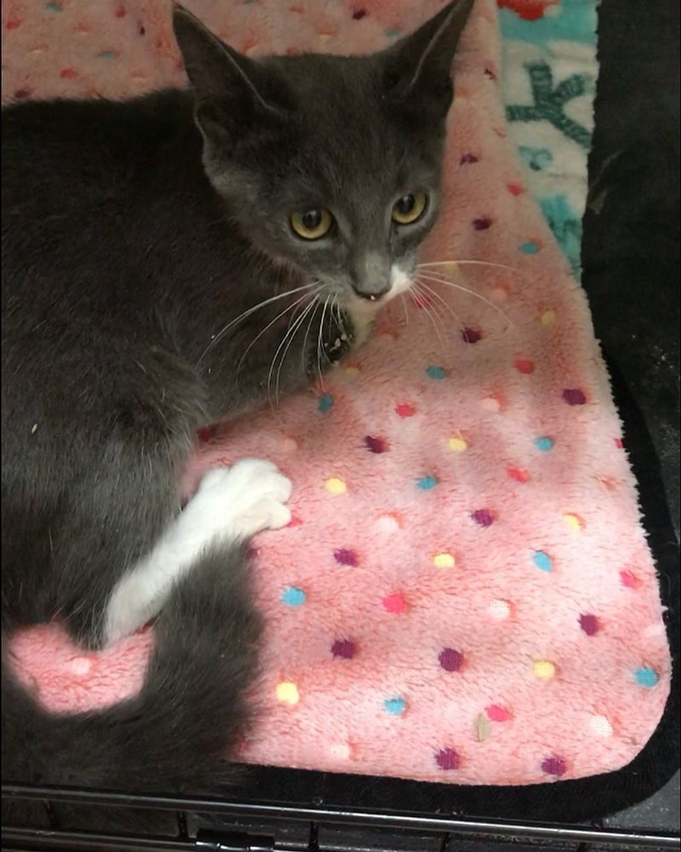 She called a few hours later, expecting to hear the worst. Turned out, the kitten didn't have a broken bone. No one knew what happened to her, but they were going to try everything to save her. They gave her some medication, lots of good food and plenty of rest. (Scroll down for video)