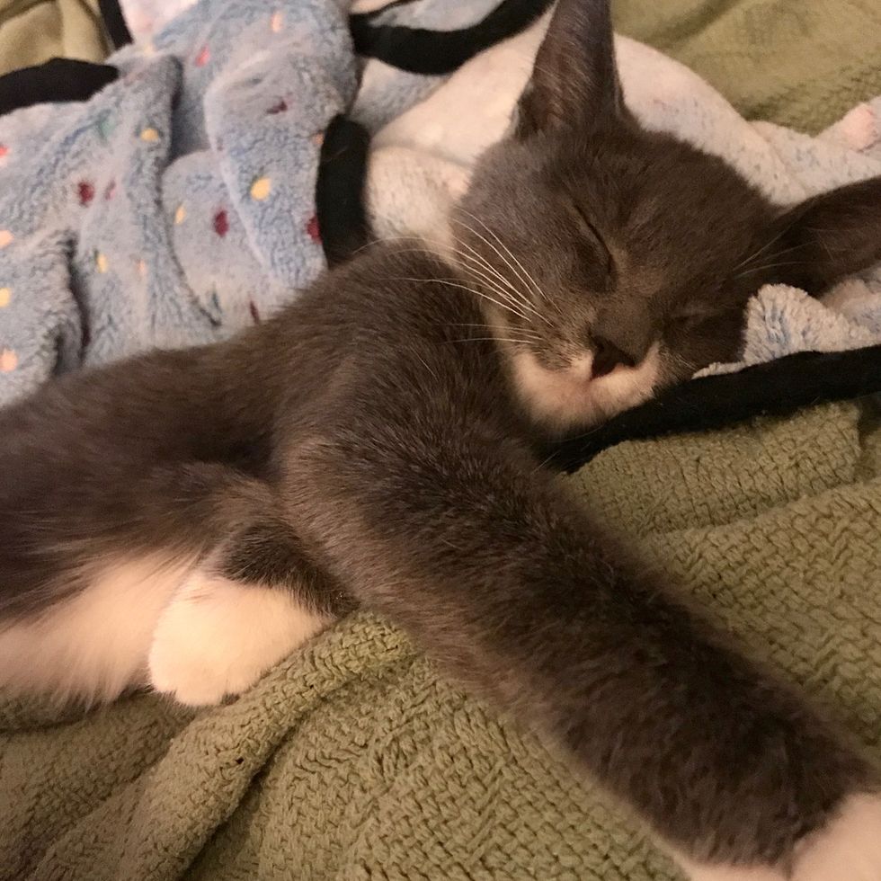 "I'd massage her legs, and her paws would make biscuits in the air. I'd help her try to walk, holding her underneath her belly. She was the sweetest kitten, just wanting to be next to me," Ellen told Love Meow.