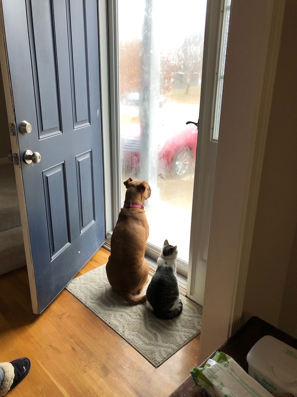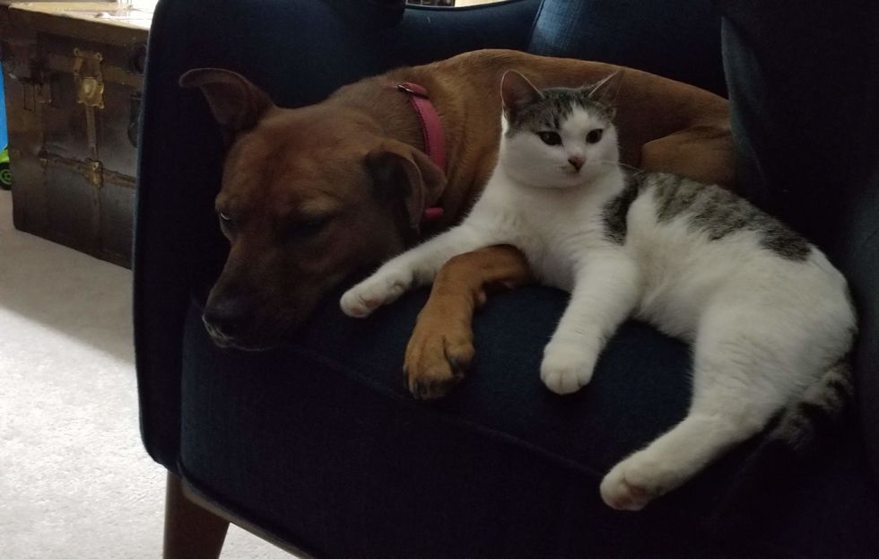 At first, Billy didn't feel comfortable staying indoors, but their rescued dog took her under her wing and offered to be her cuddle buddy.